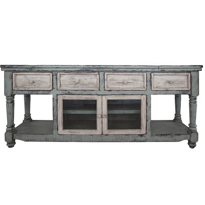 70" Blue Mango Solid Wood Open shelving Distressed TV Stand