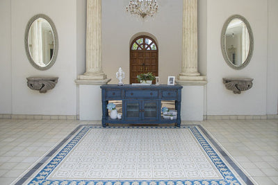 70" Blue and White Solid Wood Open shelving Distressed TV Stand