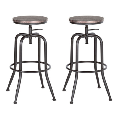 Set of Two Brown And Black Solid Wood And Steel Swivel Backless Counter Height Bar Chairs