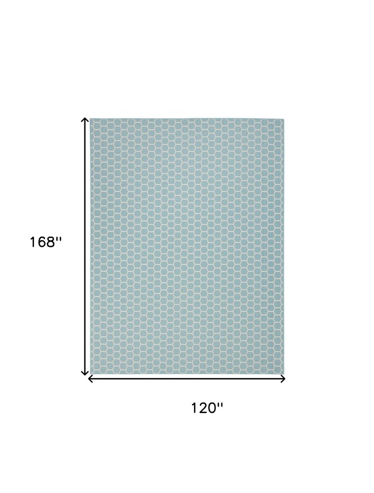 10' X 14' Aqua And Ivory Geometric Indoor Outdoor Area Rug