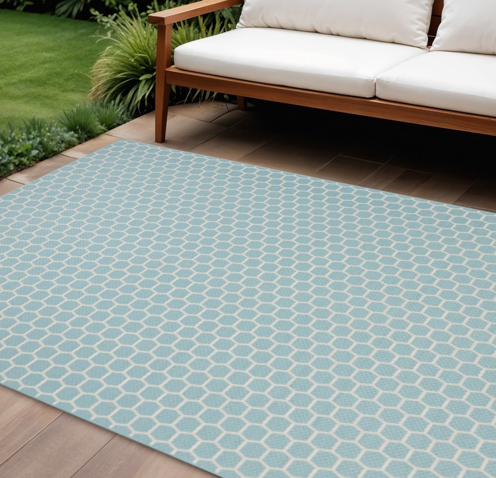 More from 10' X 14' Aqua And Ivory Geometric Indoor Outdoor Area Rug Collection