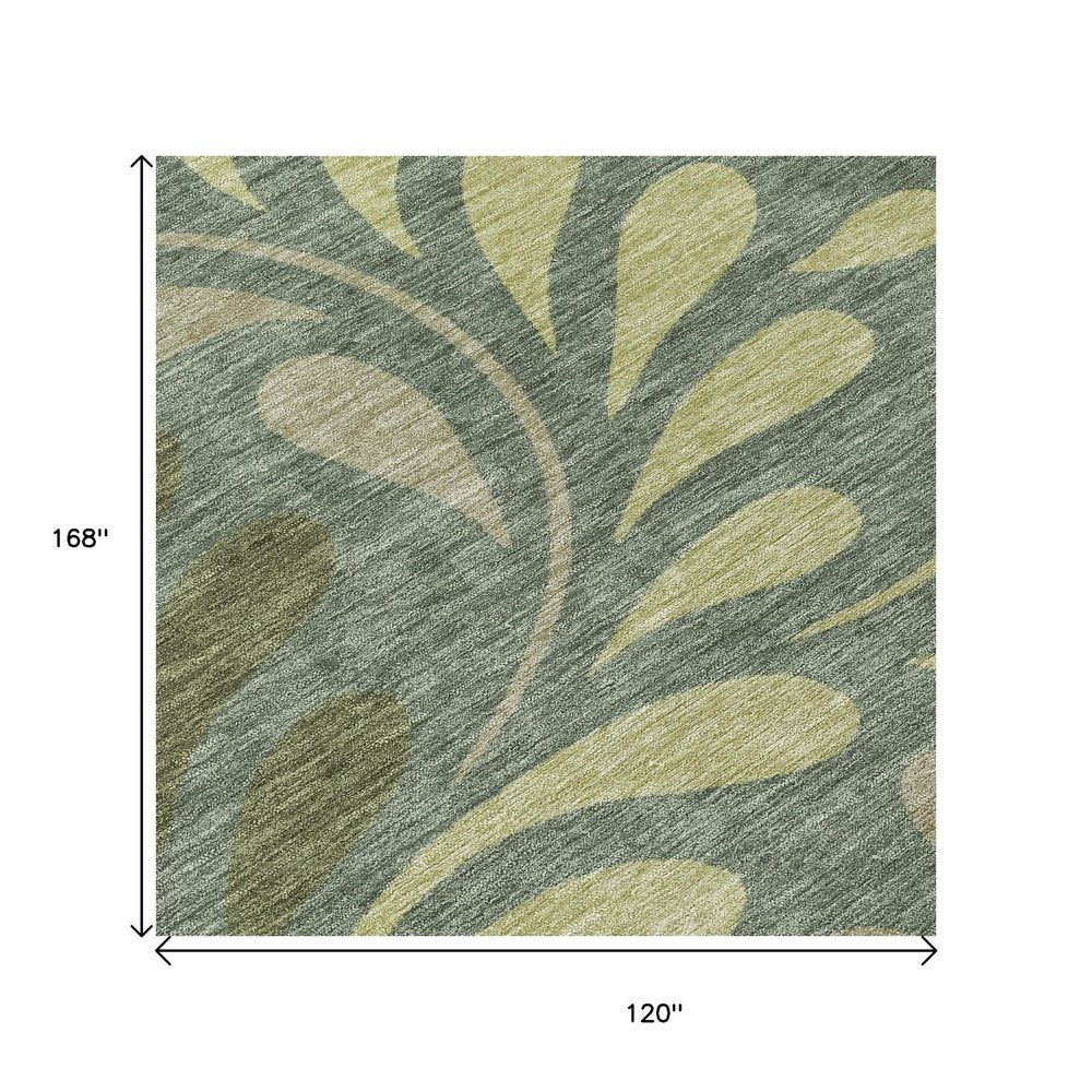 More from 10' X 14' Artichoke Green And Sage Botanical Leaves Washable Indoor Outdoor Area Rug Collection