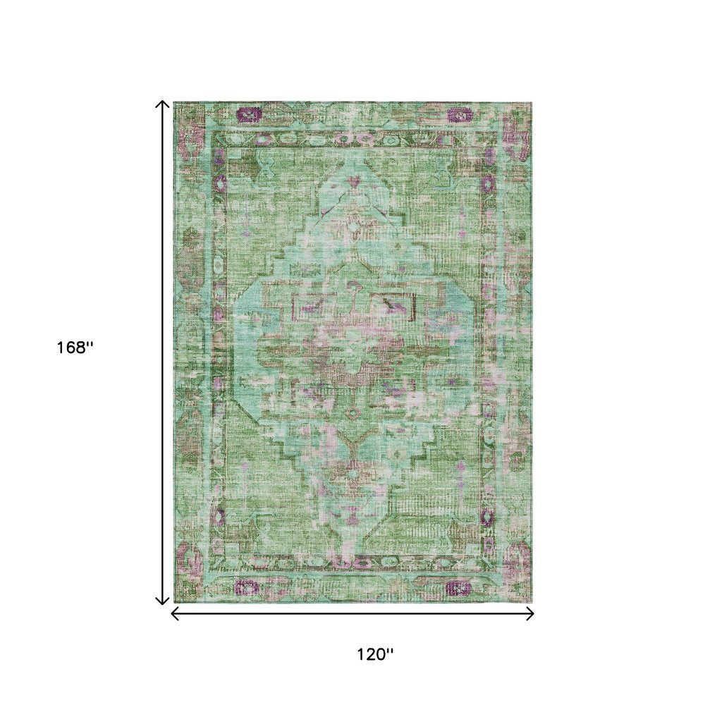 More from 10' X 14' Artichoke Green Teal Blue And Lavender Oriental Washable Indoor Outdoor Area Rug Collection