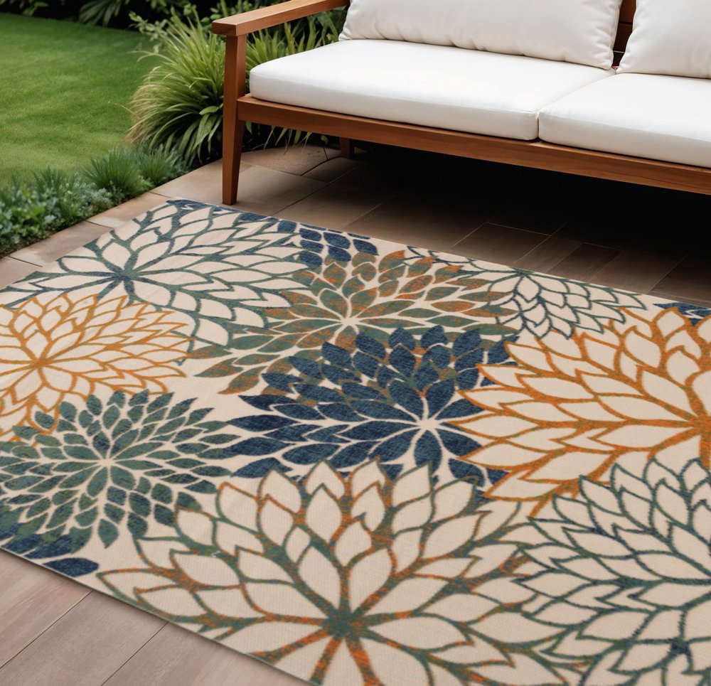 More from 10' X 14' Blue Green And Orange Floral Indoor Outdoor Area Rug Collection