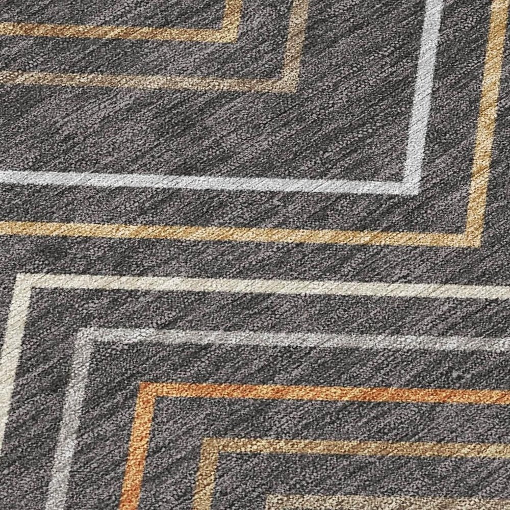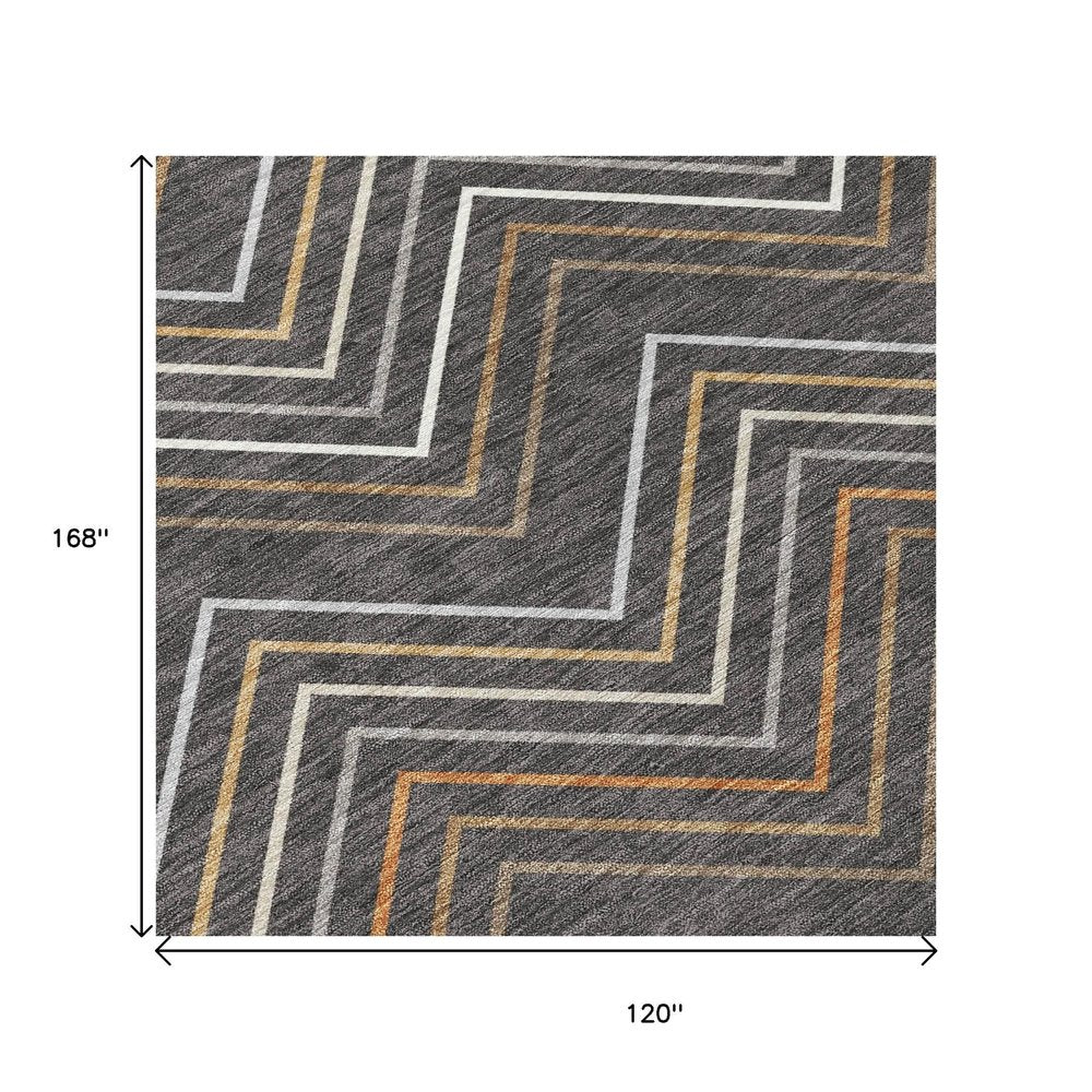 10' X 14' Gray Silver And Black Geometric Washable Indoor Outdoor Area Rug