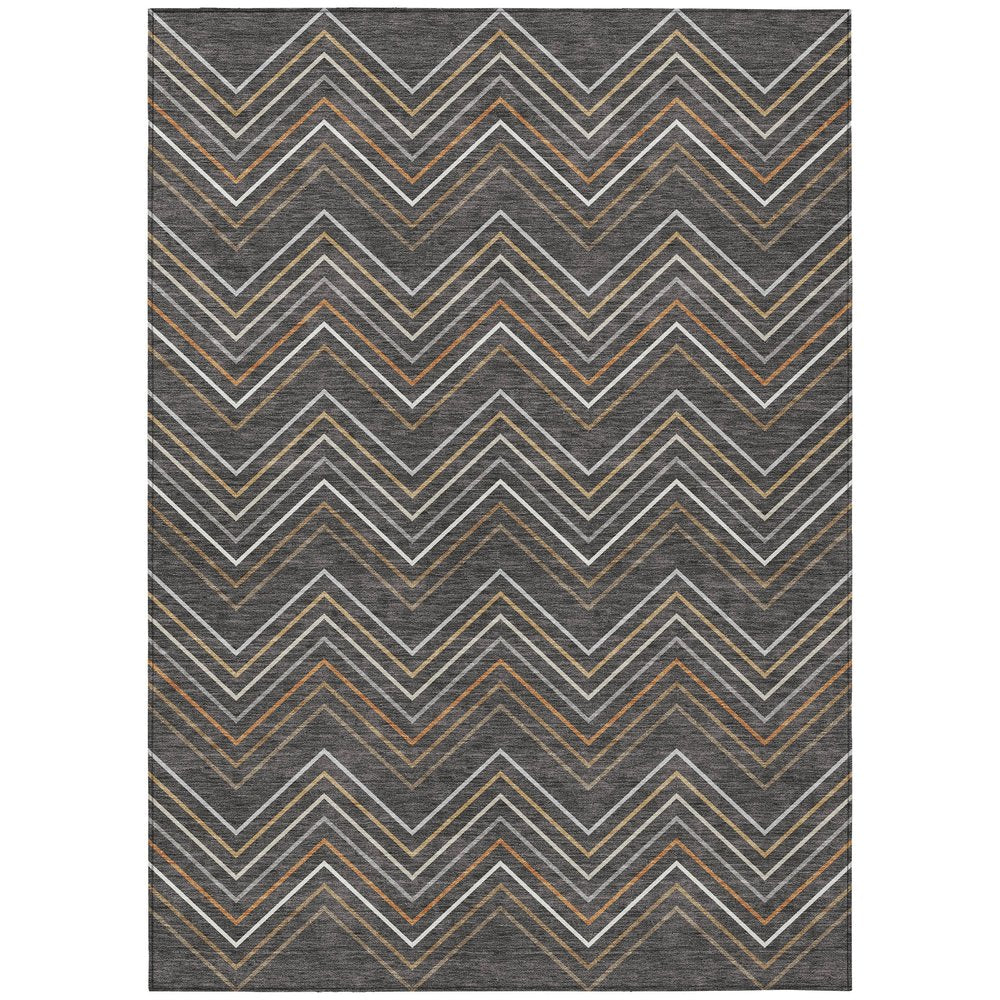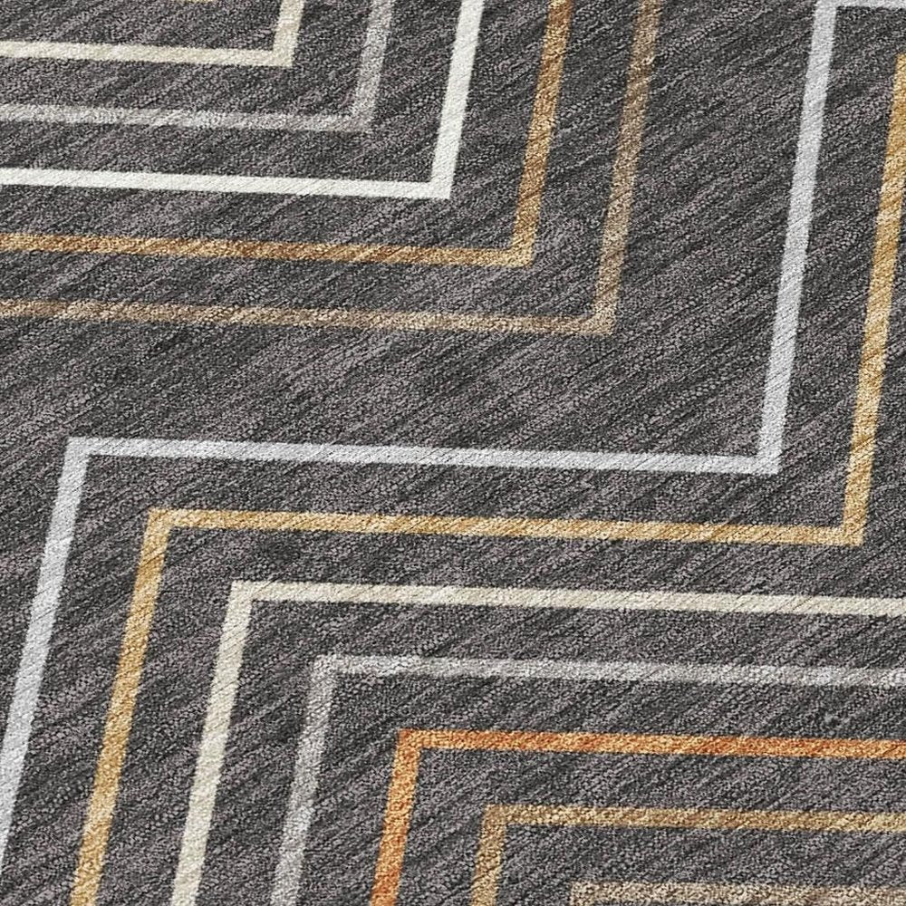 10' X 14' Charcoal Ivory And Brown Striped Washable Indoor Outdoor Area Rug