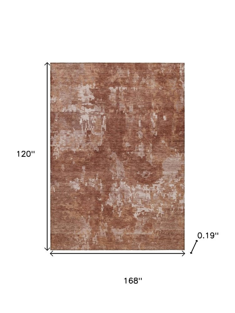 This 10-foot x 14-foot copper and ivory abstract washable indoor outdoor area rug, is a great way to add warmth to a room. This rectangle shaped rug features a abstract design that will work well both indoors or out. A classic shape marries with good looking design for your living room, hall, bedroom, porch, patio, or poolside. Ideal for outdoor spaces or high traffic areas with kids and pets, this rug is made from heavy duty polyester that is stain resistant to help repel water, dirt, and stains. Makes a great way to dress up your patio, porch, or poolside, but also works well as a durable and easy to maintain option in the kitchen, family room, or mudroom. 120.00-inch h x 168.00-inch w x 0.19-inch d.