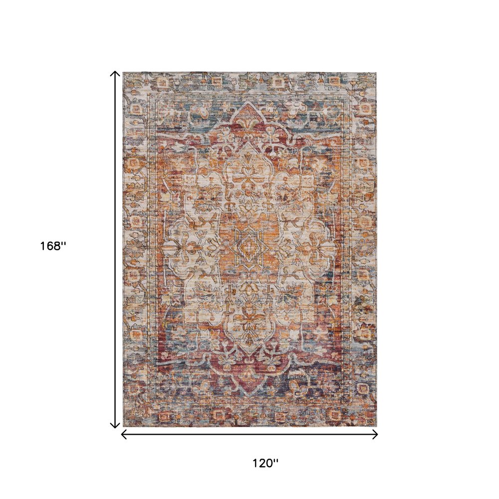 More from 10' X 14' Copper And Ivory Floral Medallion Washable Indoor Outdoor Area Rug Collection