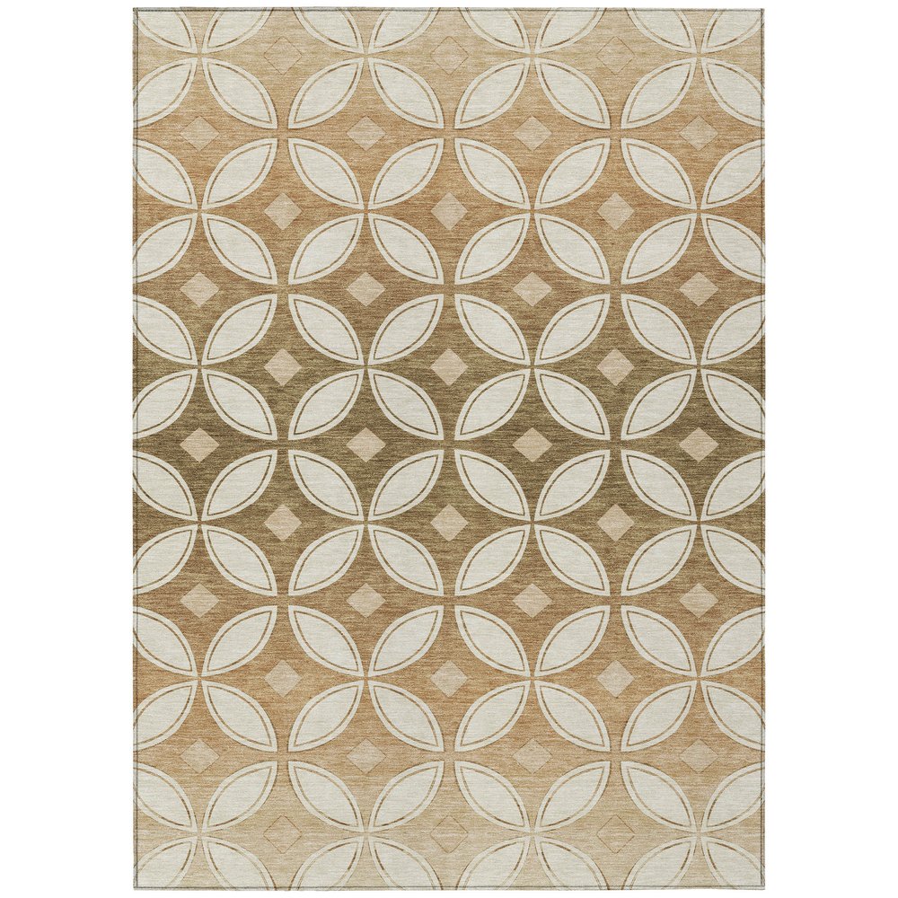This 10-foot x 14-foot copper and ivory geometric washable indoor outdoor area rug, is a great way to add warmth to a room. This rectangle shaped rug features a geometric design that will work well both indoors or out. A classic shape marries with good looking design for your living room, hall, bedroom, porch, patio, or poolside. Ideal for outdoor spaces or high traffic areas with kids and pets, this rug is made from heavy duty polyester that is stain resistant to help repel water, dirt, and stains. Versatile in use, durable, and easy to maintain, this rug is an ideal solution to add a decorative and inviting touch to your indoor or outdoor space. 120.00-inch h x 168.00-inch w x 0.19-inch d.