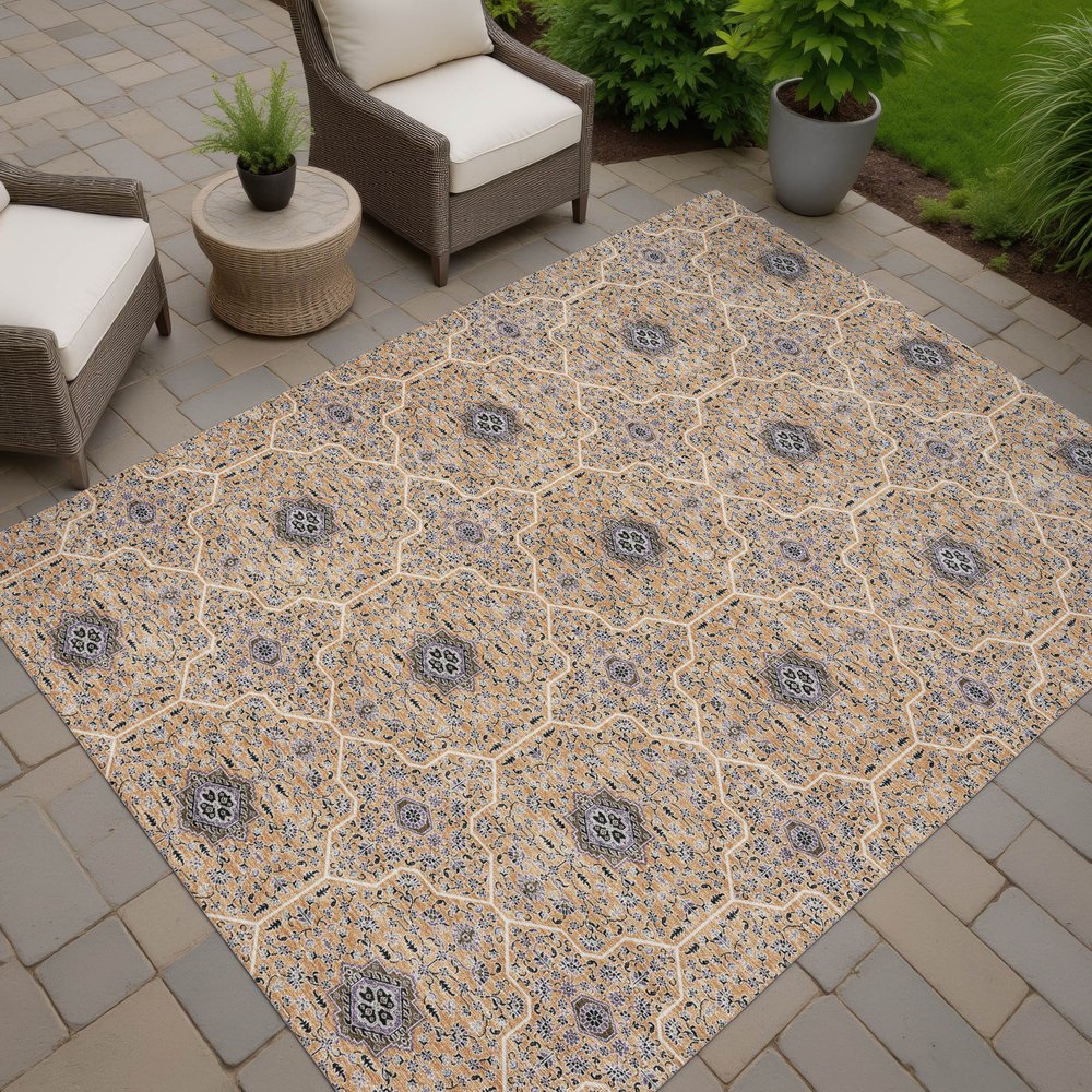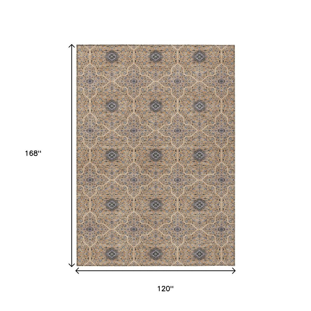 Add great coloration and comfortable texture to your space with this 10-foot x 14-foot copper black and brown oriental washable indoor outdoor area rug. This rectangle shaped rug features a oriental design that will work well both indoors or out. A classic shape marries with good looking design for your living room, hall, bedroom, porch, patio, or poolside. Ideal for outdoor spaces or high traffic areas with kids and pets, this rug is made from heavy duty polyester that is stain resistant to help repel water, dirt, and stains. Makes a great way to dress up your patio, porch, or poolside, but also works well as a durable and easy to maintain option in the kitchen, family room, or mudroom. 120.00-inch h x 168.00-inch w x 0.19-inch d.