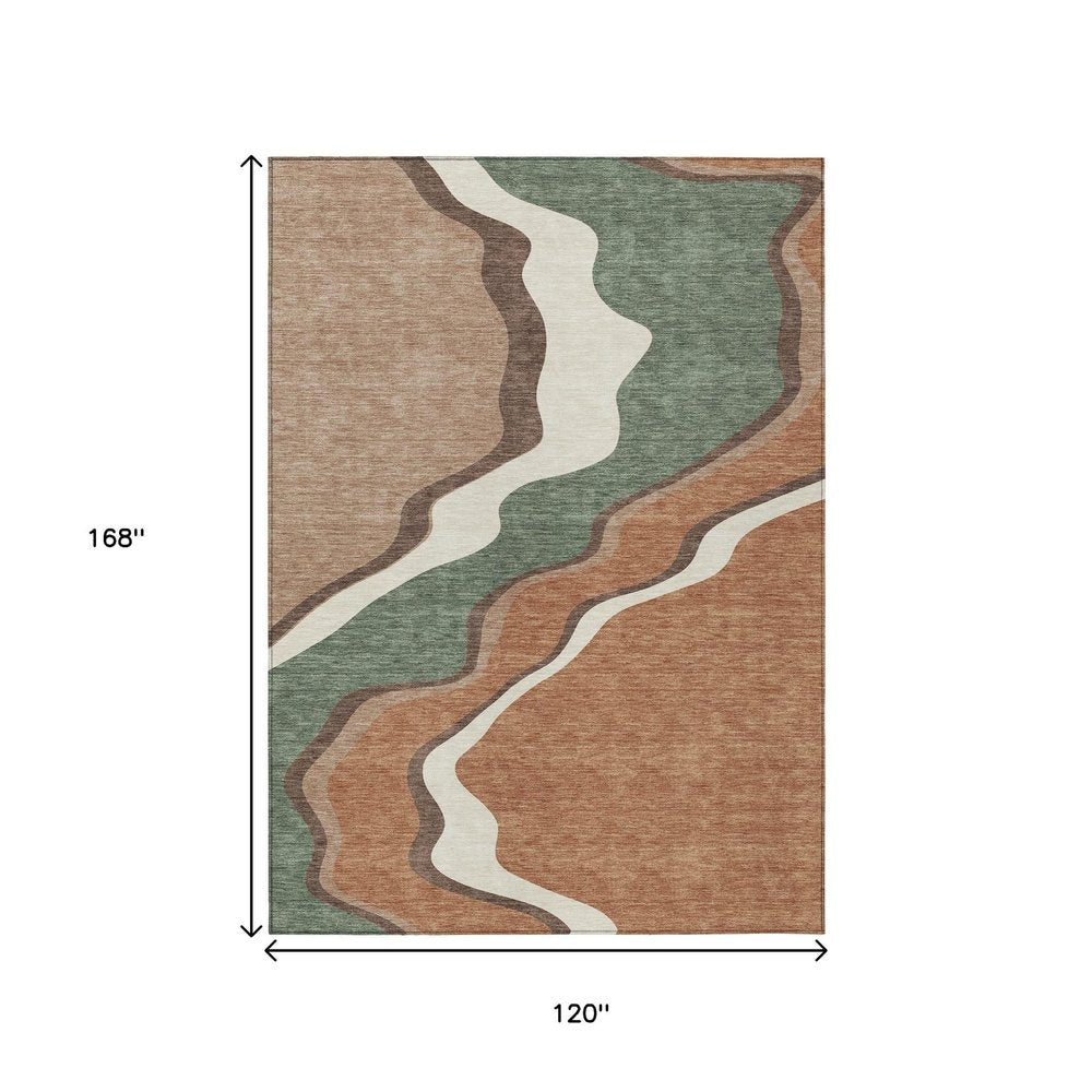 More from 10' X 14' Copper Ivory And Fern Green Abstract Washable Indoor Outdoor Area Rug Collection