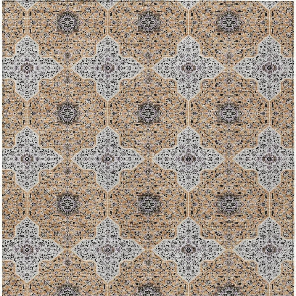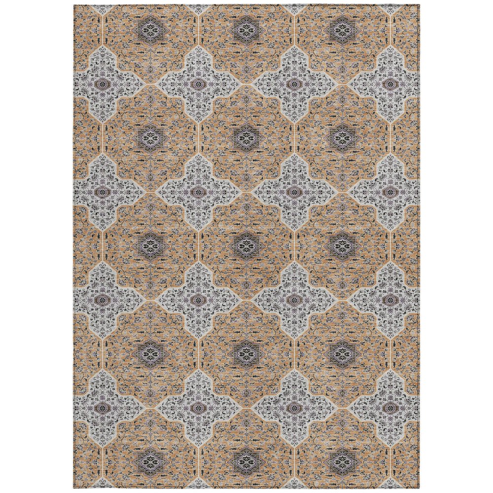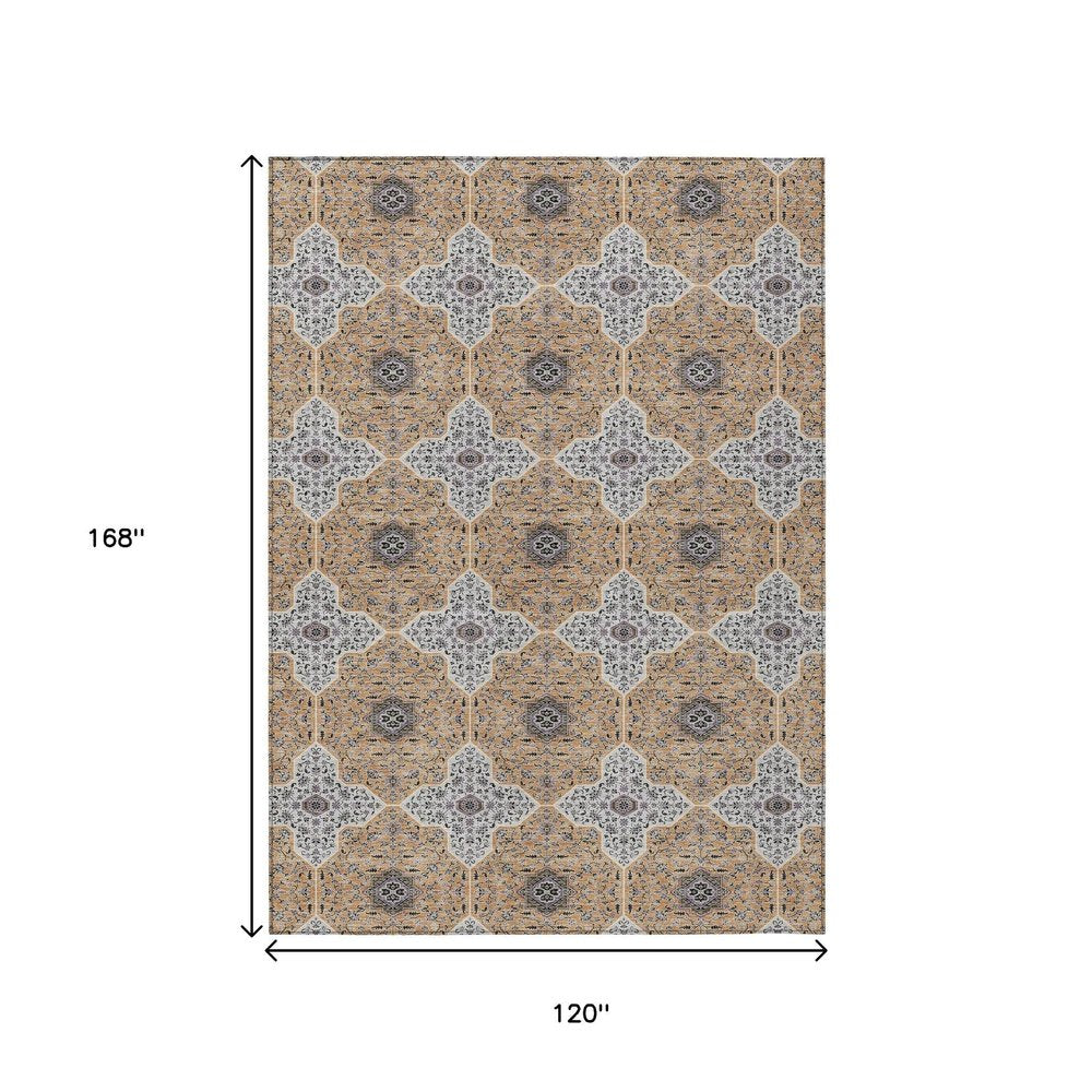 Add great coloration and comfortable texture to your space with this 10-foot x 14-foot copper silver and black quatrefoil washable indoor outdoor area rug. This rectangle shaped rug features a quatrefoil design that will work well both indoors or out. A classic shape marries with good looking design for your living room, hall, bedroom, porch, patio, or poolside. Ideal for outdoor spaces or high traffic areas with kids and pets, this rug is made from heavy duty polyester that is stain resistant to help repel water, dirt, and stains. Versatile in use, durable, and easy to maintain, this rug is an ideal solution to add a decorative and inviting touch to your indoor or outdoor space. 120.00-inch h x 168.00-inch w x 0.19-inch d.