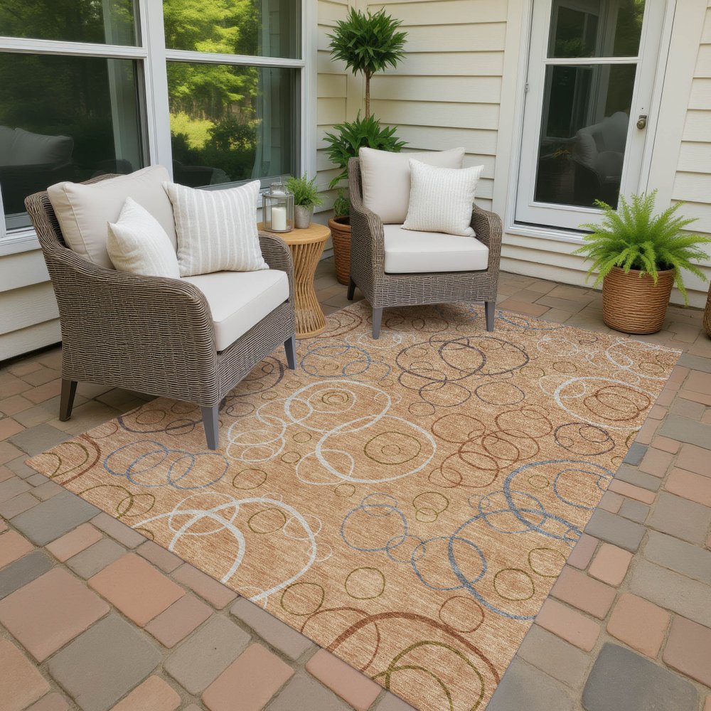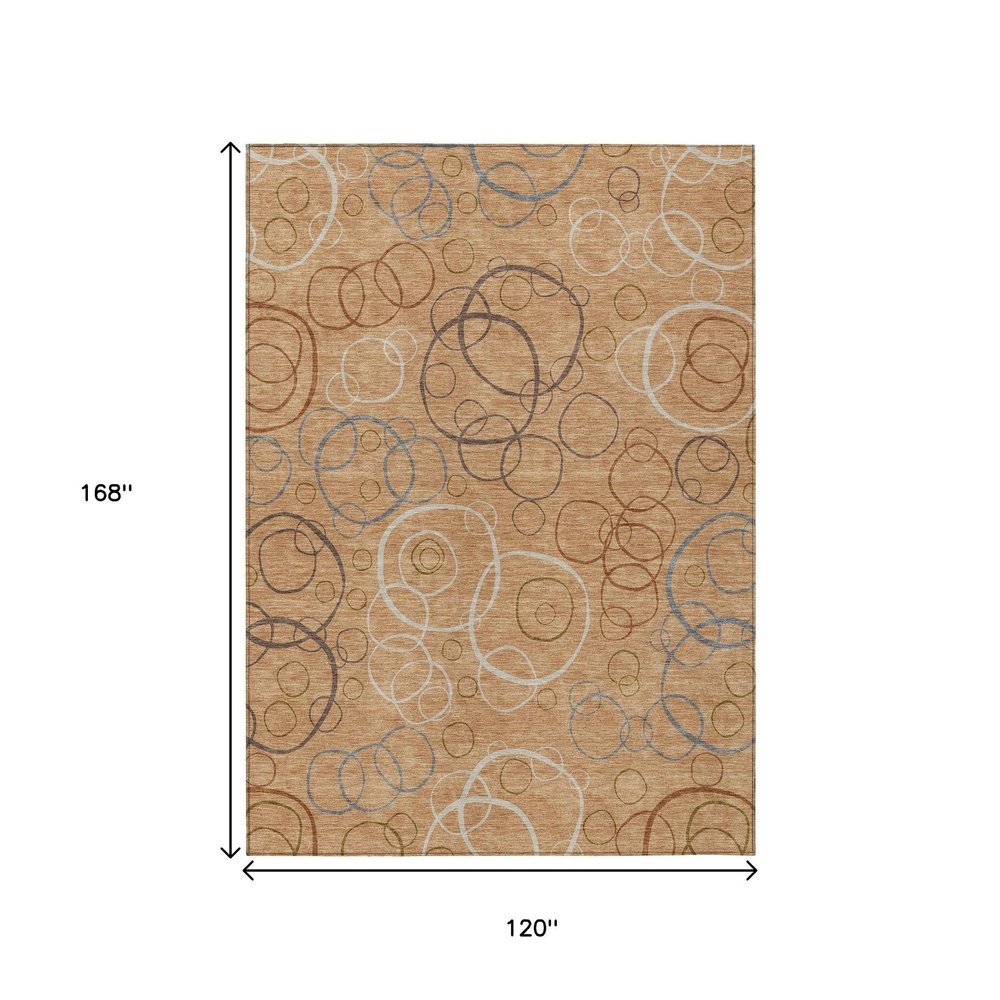 Add great coloration and comfortable texture to your space with this 10-foot x 14-foot copper silver and rust geometric washable indoor outdoor area rug. This rectangle shaped rug features a geometric design that will work well both indoors or out. A classic shape marries with good looking design for your living room, hall, bedroom, porch, patio, or poolside. Ideal for outdoor spaces or high traffic areas with kids and pets, this rug is made from heavy duty polyester that is stain resistant to help repel water, dirt, and stains. Makes a great way to dress up your patio, porch, or poolside, but also works well as a durable and easy to maintain option in the kitchen, family room, or mudroom. 120.00-inch h x 168.00-inch w x 0.19-inch d.