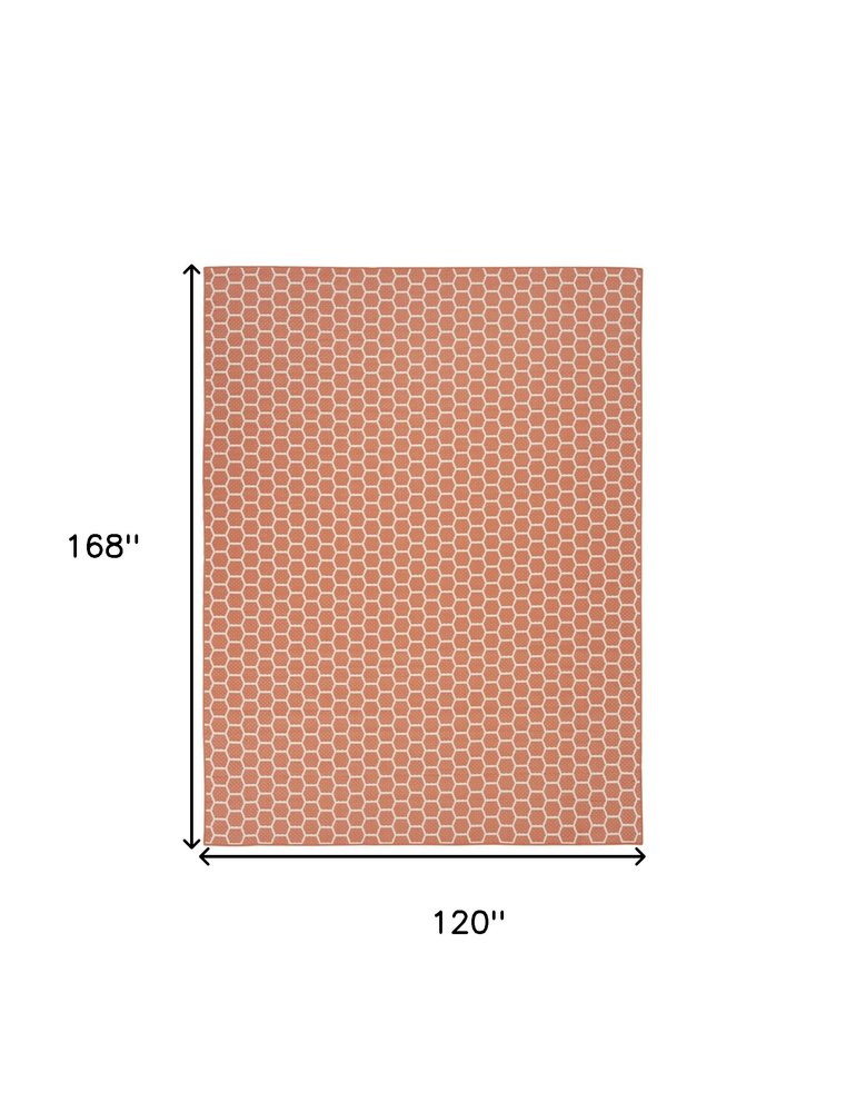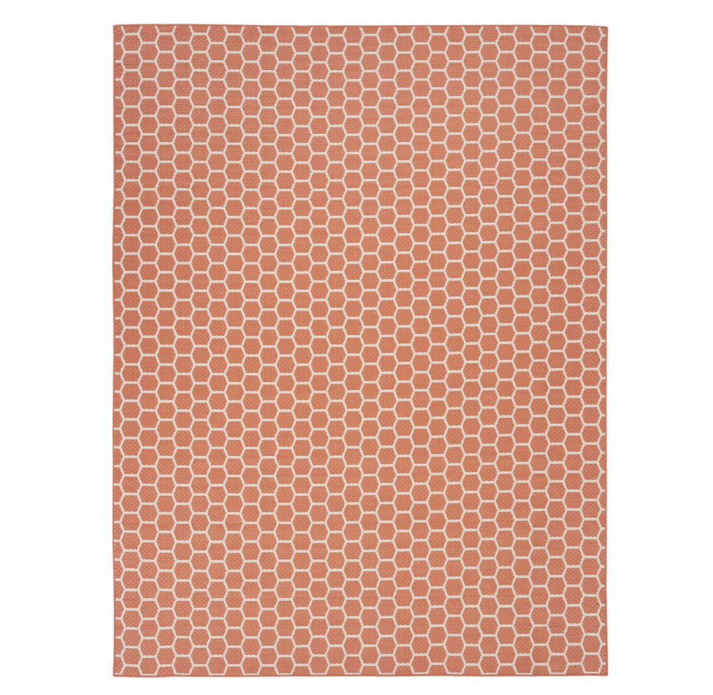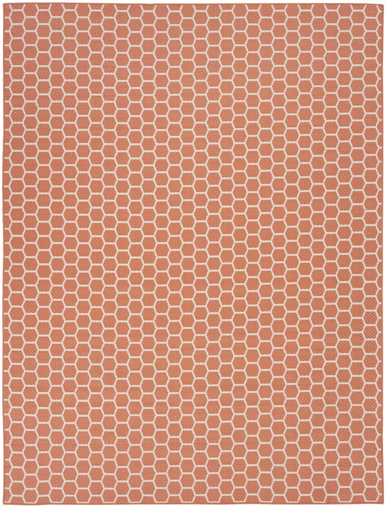 This 10-foot x 14-foot coral and ivory geometric indoor outdoor area rug, is a great way to add warmth to a room. This rectangle shaped rug features a geometric design that will work well both indoors or out. A classic shape marries with good looking design for your living room, hall, bedroom, porch, patio, or poolside. Makes a great way to dress up your patio, porch, or poolside, but also works well as a durable and easy to maintain option in the kitchen, family room, or mudroom. 120-inch h x 168-inch w x 0.23-inch d.