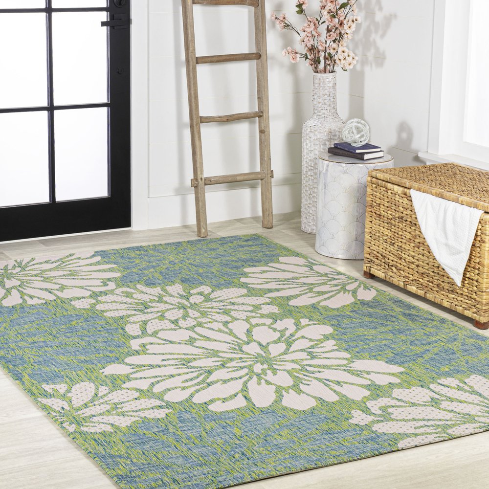 This 10-foot x 14-foot cream and green floral indoor outdoor area rug, is a great way to add warmth to a room. This rectangle shaped rug features a floral design that will work well both indoors or out. A classic shape marries with good looking design for your living room, hall, bedroom, porch, patio, or poolside. Makes a great way to dress up your patio, porch, or poolside, but also works well as a durable and easy to maintain option in the kitchen, family room, or mudroom. 120.00-inch h x 168.00-inch w x 0.19-inch d.