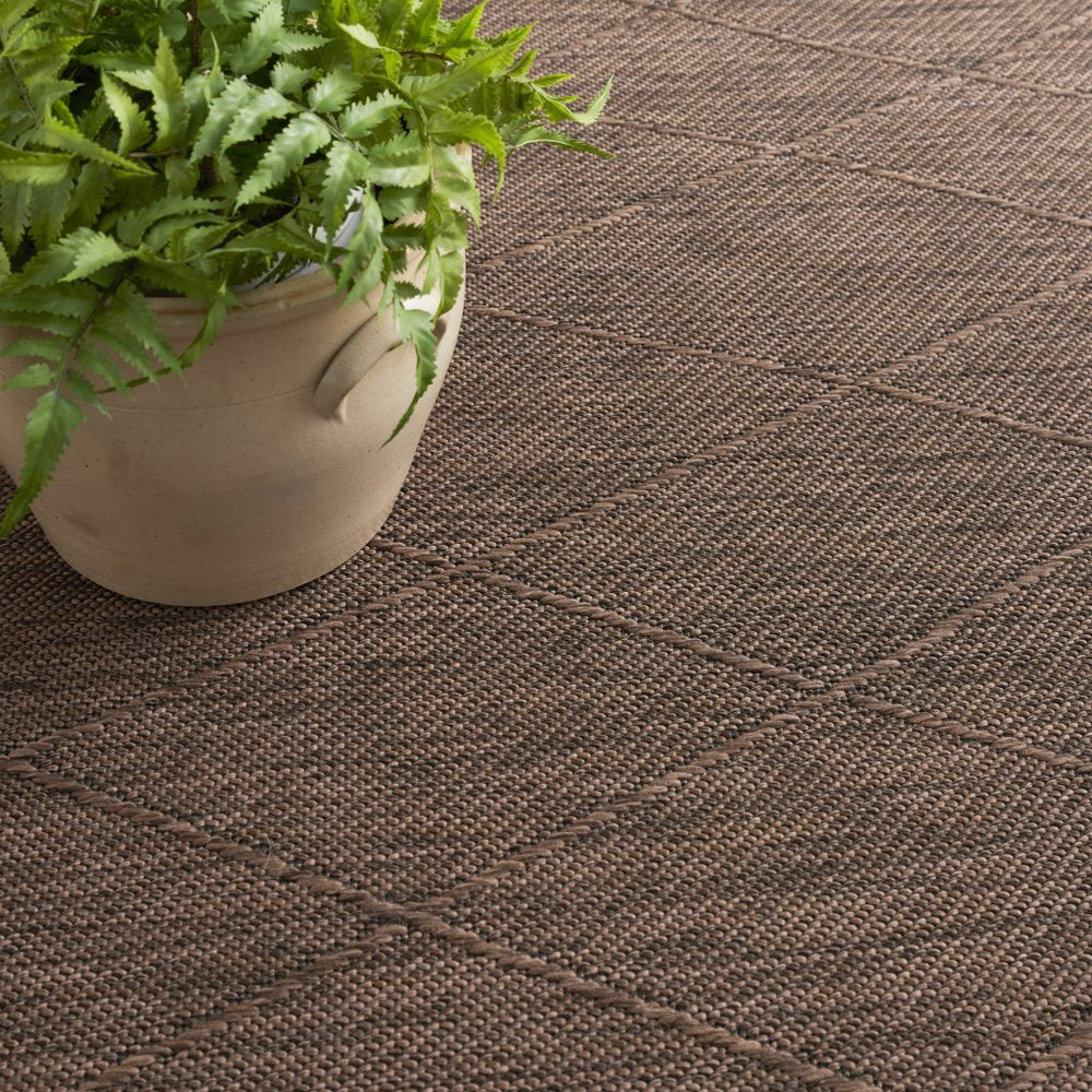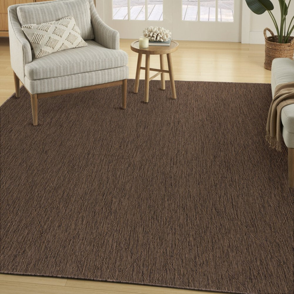 Add great coloration and comfortable texture to your space with this 10-foot x 14-foot dark brown and brown geometric indoor outdoor area rug. This rectangle shaped rug features a geometric design that will work well both indoors or out. A classic shape marries with good looking design for your living room, hall, bedroom, porch, patio, or poolside. Makes a great way to dress up your patio, porch, or poolside, but also works well as a durable and easy to maintain option in the kitchen, family room, or mudroom. 120-inch h x 168-inch w x 0.38-inch d.
