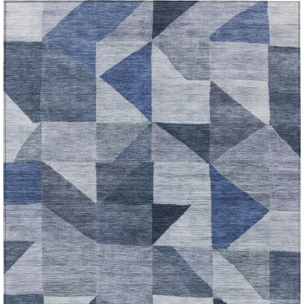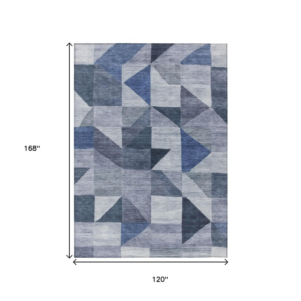 10' X 14' Denim Blue And Ivory Geometric Washable Indoor Outdoor Area Rug