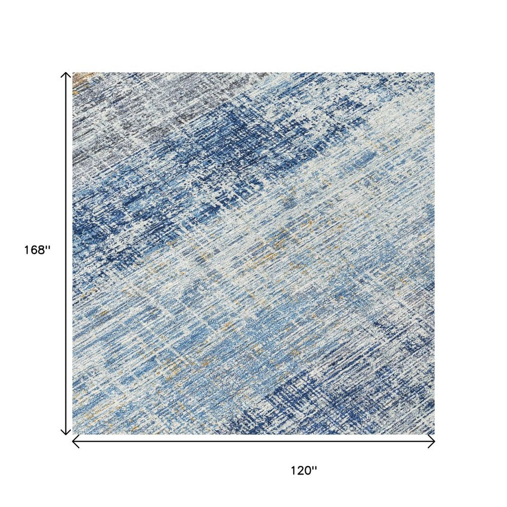 Set an inviting tone in your space with this 10-foot x 14-foot denim blue ivory and beige striped washable indoor outdoor area rug. This rectangle shaped rug features a striped design that will work well both indoors or out. A classic shape marries with good looking design for your living room, hall, bedroom, porch, patio, or poolside. Ideal for outdoor spaces or high traffic areas with kids and pets, this rug is made from heavy duty polyester that is stain resistant to help repel water, dirt, and stains. Versatile in use, durable, and easy to maintain, this rug is an ideal solution to add a decorative and inviting touch to your indoor or outdoor space. 120.00-inch h x 168.00-inch w x 0.19-inch d.
