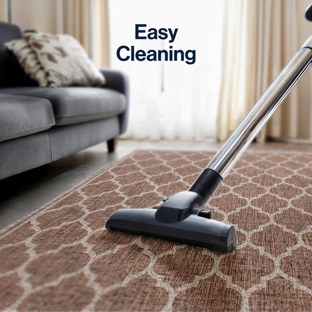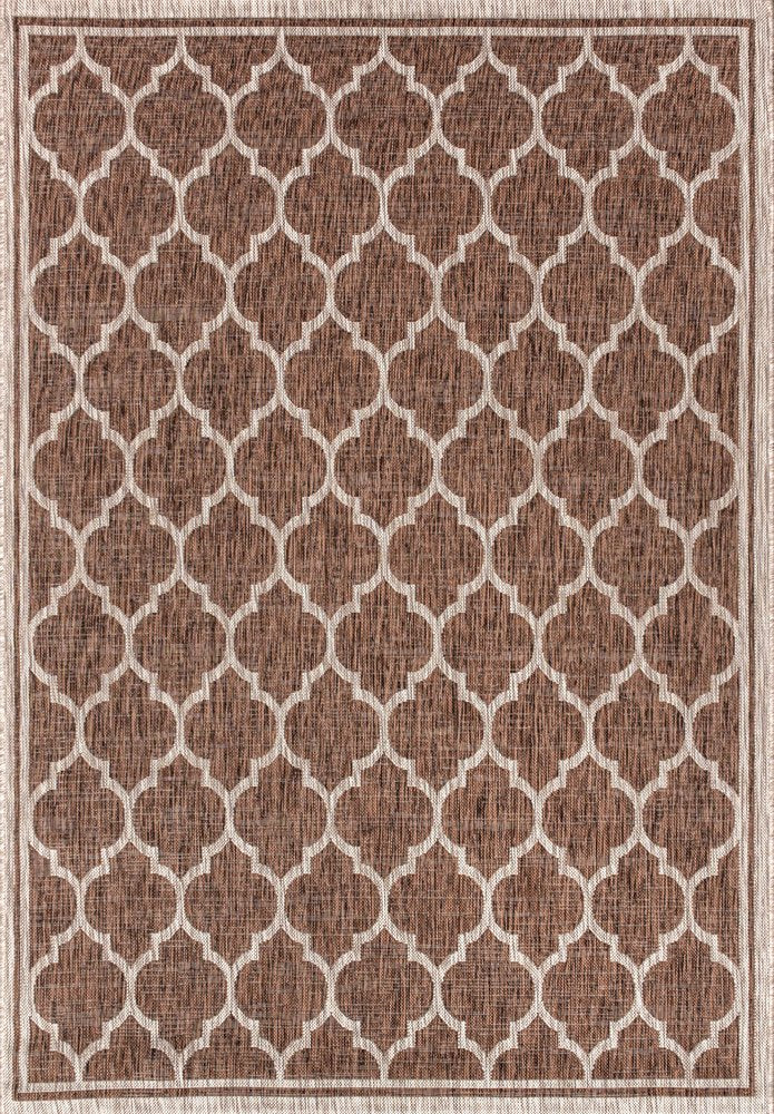 Set an inviting tone in your space with this 10-foot x 14-foot espresso and taupe geometric indoor outdoor area rug. This rectangle shaped rug features a geometric design that will work well both indoors or out. A classic shape marries with good looking design for your living room, hall, bedroom, porch, patio, or poolside. Makes a great way to dress up your patio, porch, or poolside, but also works well as a durable and easy to maintain option in the kitchen, family room, or mudroom. 120.00-inch h x 168.00-inch w x 0.19-inch d.