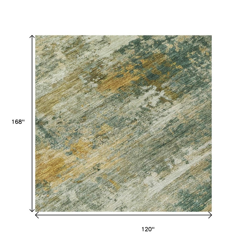 More from 10' X 14' Fern Green And Gold Abstract Washable Indoor Outdoor Area Rug Collection