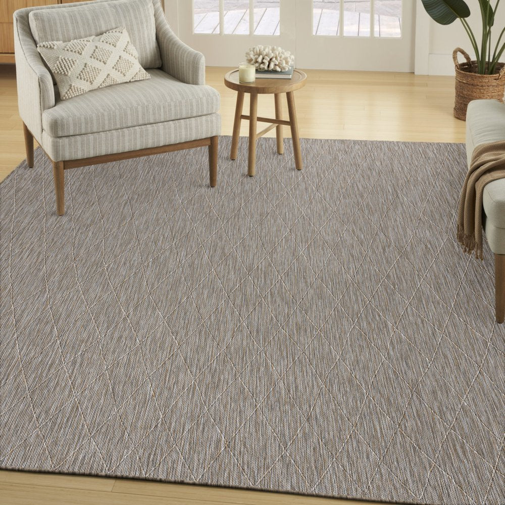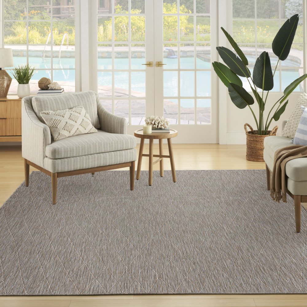 Add some artistry to your room with this 10-foot x 14-foot gray and light gray geometric indoor outdoor area rug. This rectangle shaped rug features a geometric design that will work well both indoors or out. A classic shape marries with good looking design for your living room, hall, bedroom, porch, patio, or poolside. Makes a great way to dress up your patio, porch, or poolside, but also works well as a durable and easy to maintain option in the kitchen, family room, or mudroom. 120-inch h x 168-inch w x 0.38-inch d.