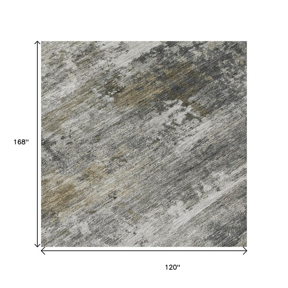 10' X 14' Gray And Silver Abstract Washable Indoor Outdoor Area Rug