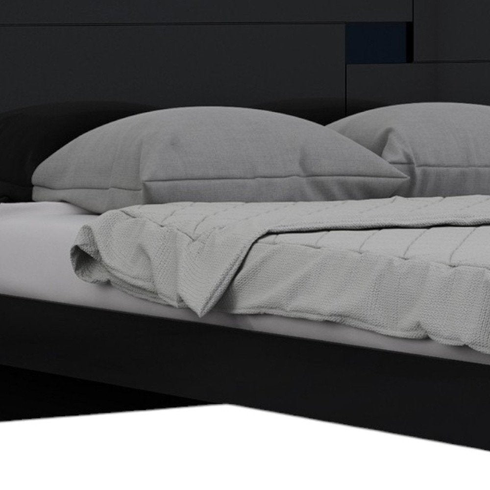 Elevate your bedroom with this modern four-piece bedroom set, showcasing a sleek black solid wood design that includes a bed, nightstand, dresser, and a dresser mirror. The sophisticated monochromatic palette of black adds a touch of contemporary elegance to your space, creating a cohesive look that exudes style and sophistication. The clean lines and minimalist aesthetic of the set bring a sense of refinement to your bedroom decor, while the high-quality craftsmanship ensures long-lasting durability and functionality. Perfect for those seeking a chic and cohesive bedroom interior, this black bedroom set is the epitome of modern sophistication and timeless appeal. 79-inch H x 80-inch W x 43-inch D