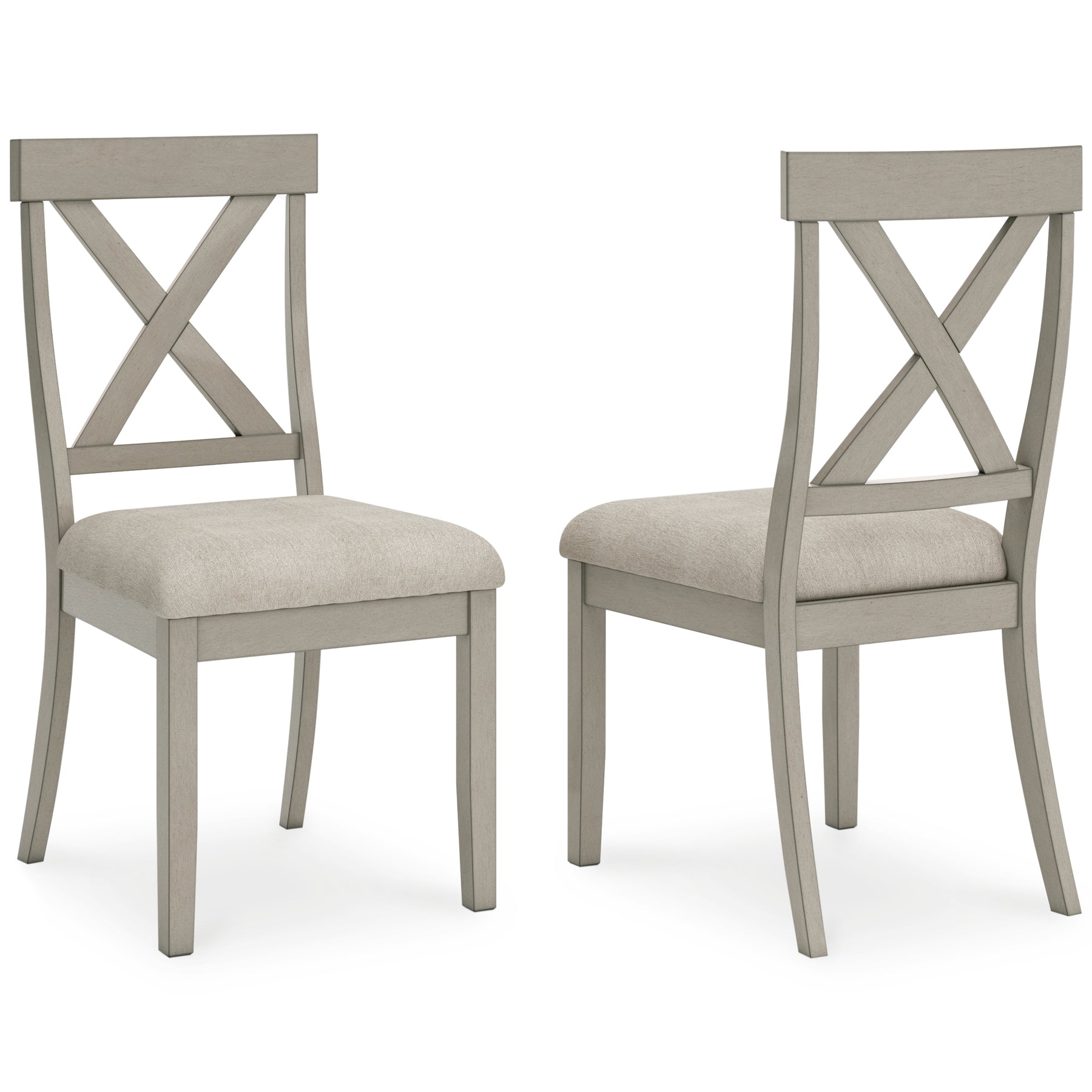 Bring a relaxed yet refined sense of good taste to a space with this wonderfully comfortable set of 2 dining chairs. Clean-lined frame sports a gray finish that’s so easy on the eyes. Covered in a complementary textured beige fabric, the chair’s cushioned upholstered seat goes easy on the body. And with classic X-back styling, this chair is an inspired choice for modern farmhouse living.