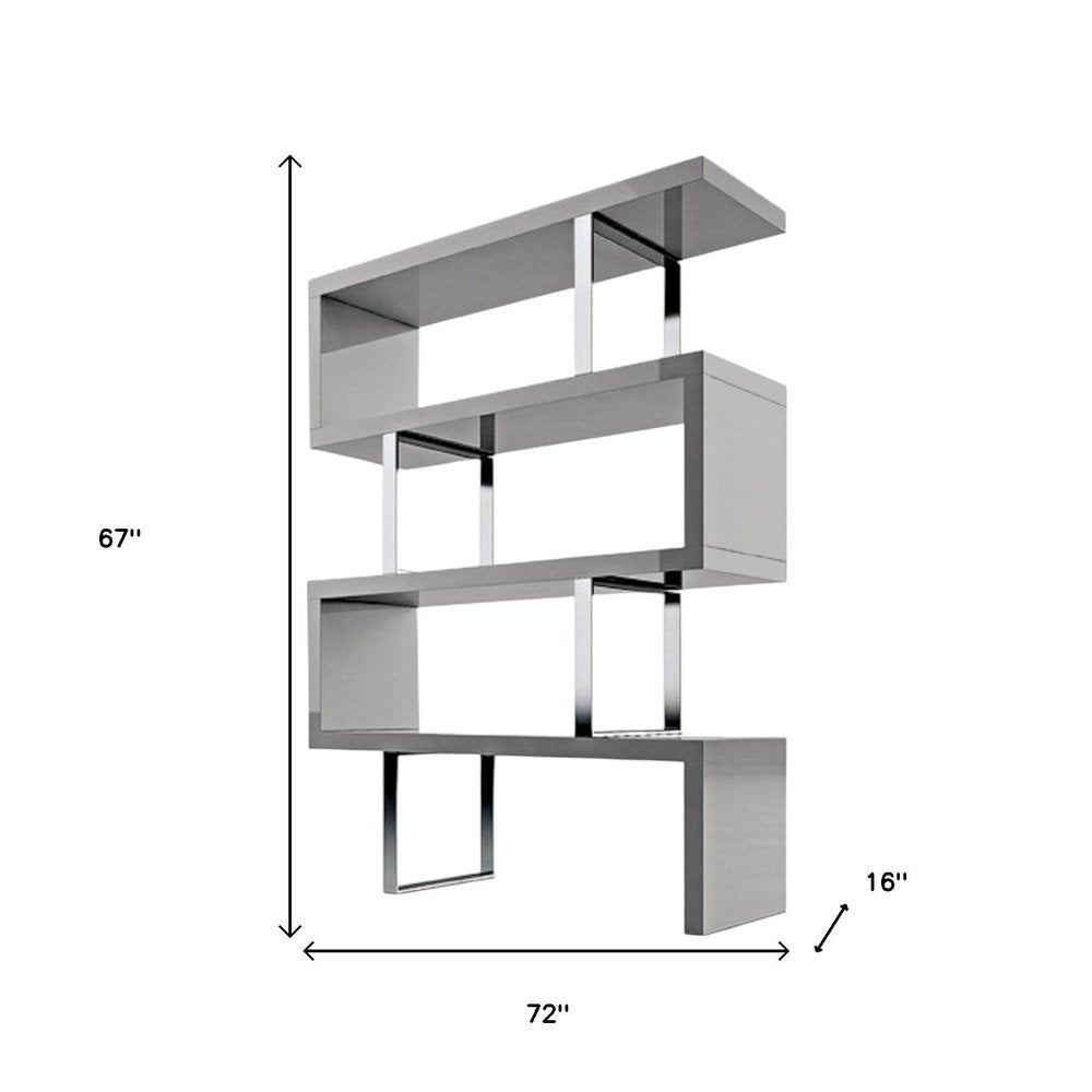 67" Gray And Silver Metal and Wood Three Tier Etagere Bookcase