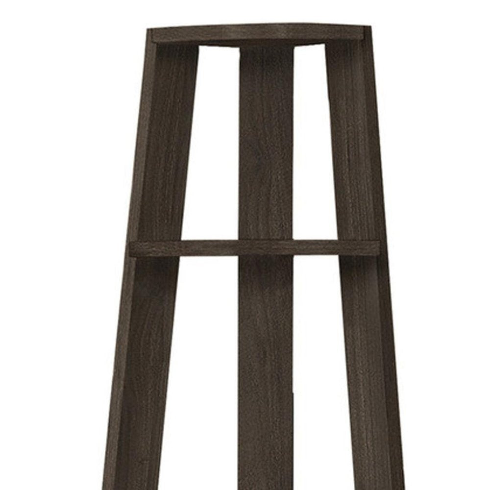 69" Brown And Black Wood And Metal Ten Tier Corner Bookcase