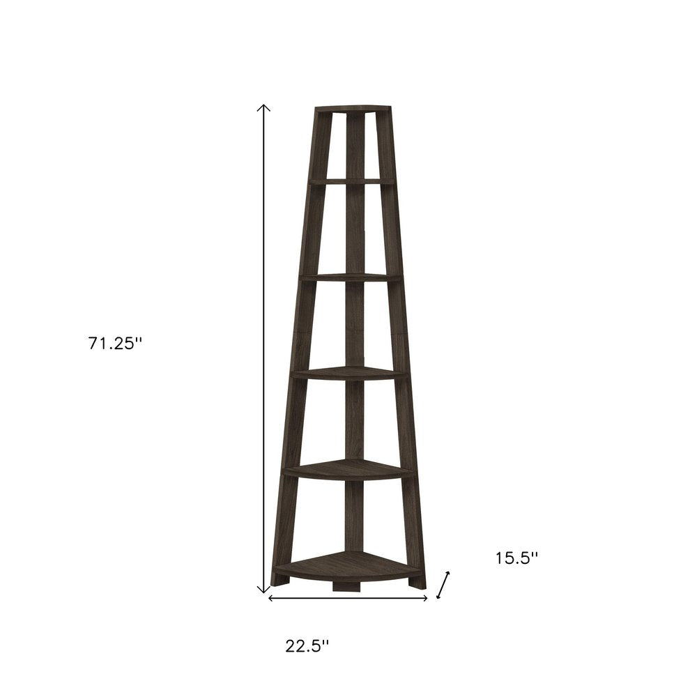 More from 71" Oak Particle Board and Wood Five Tier Corner Bookcase Collection