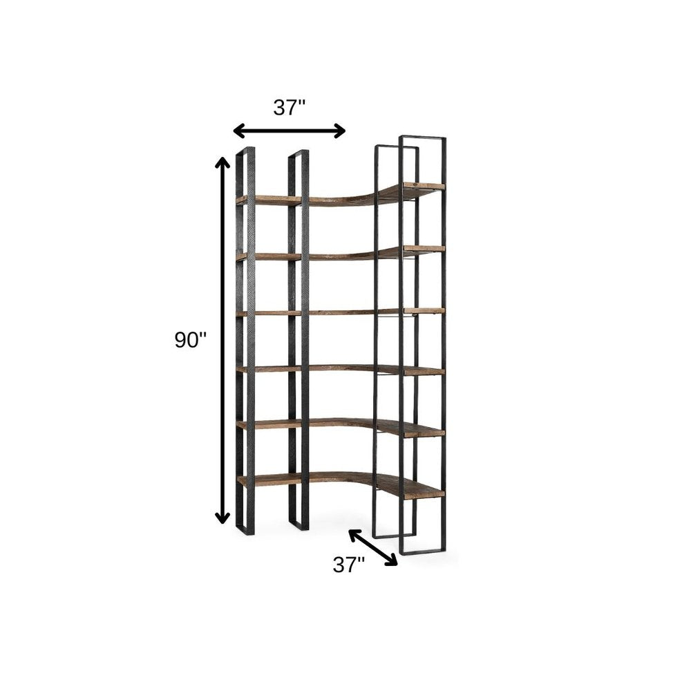 This 90-inch black and brown iron and wood six tier bookcase is a fresh and updated way to help you keep your space neat and organized. The functional 6 shelf tiers offer fantastic storage space. Great to use independently or pair with additional units to create a different look and add even more storage. Increase your room's capacity for storage and display with this great shelving unit. 90-inch h x 37-inch w x 37-inch d.