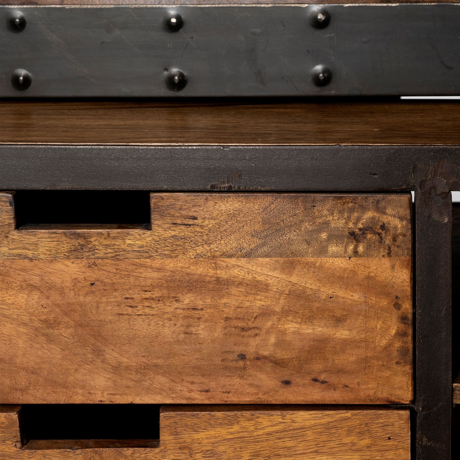 More from 94" Black And Brown Distressed Copper and Wood Four Tier Library Bookcase with Four Drawers Collection