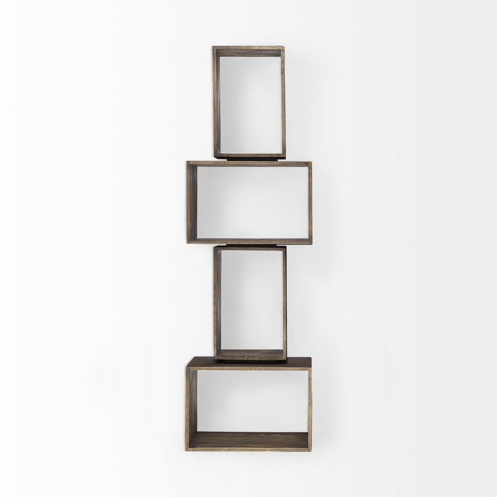 Set of Two Brown Solid and Manufactured Wood Two Tier Floating Bookcase