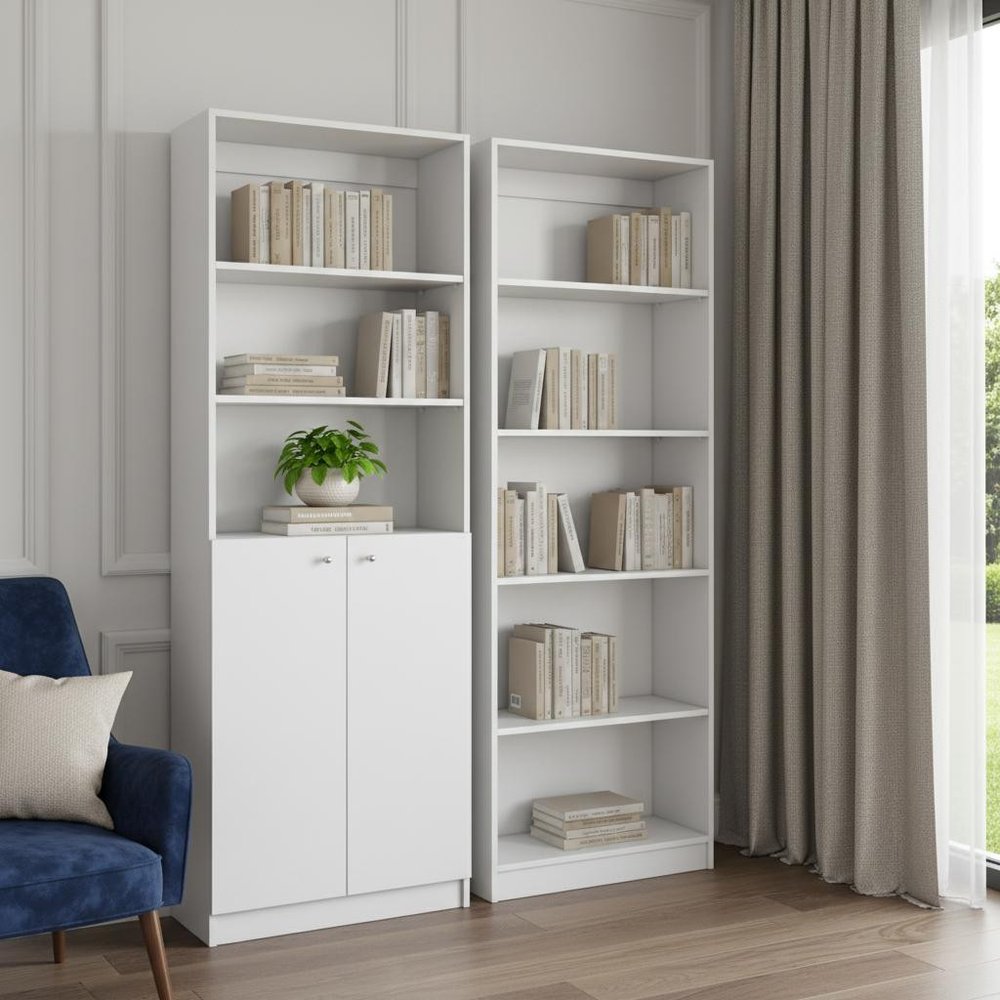 More from Set of Two White Wood Five Tier Modular Bookcase with Two Doors Collection