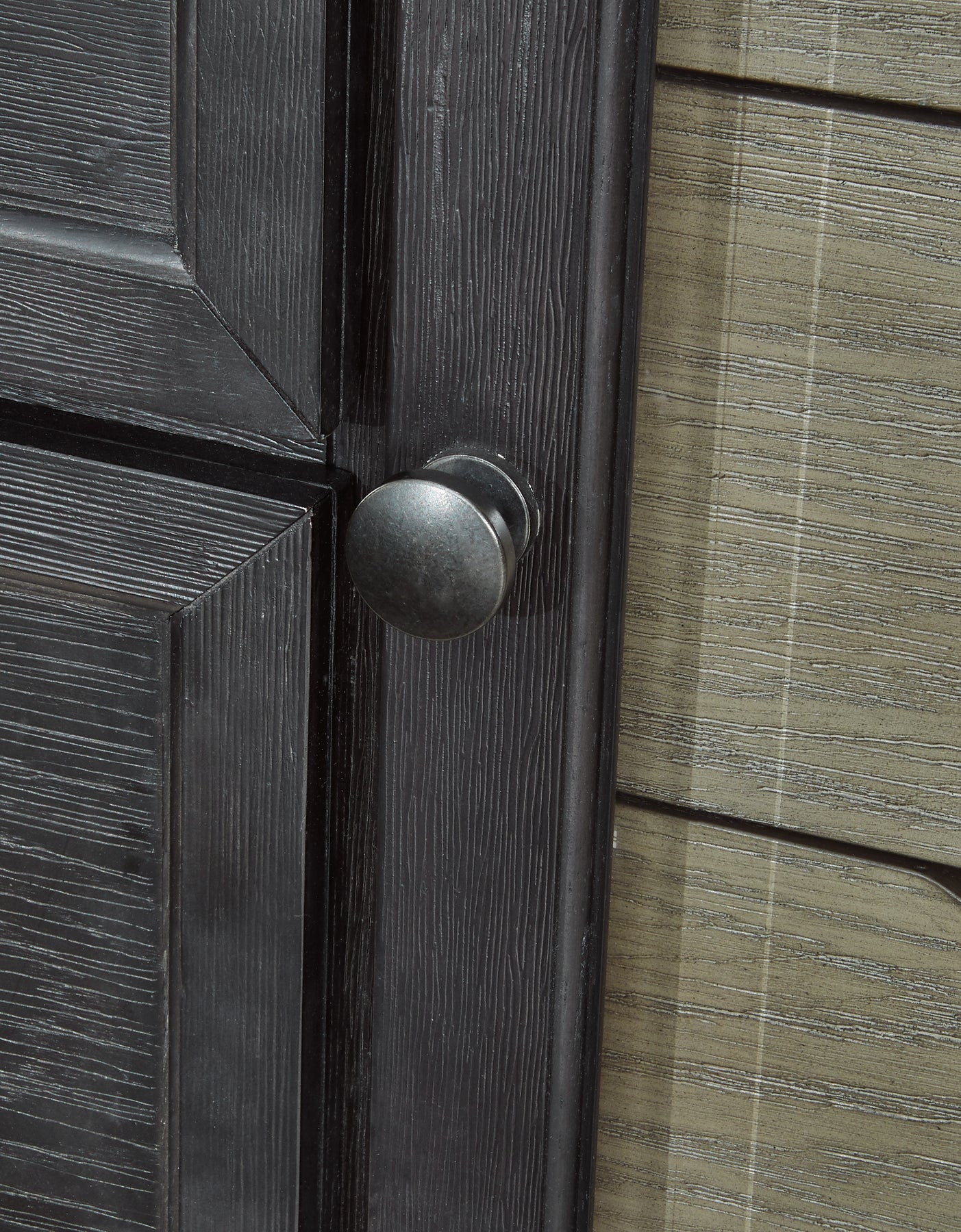 • Two-tone finish (brushed black and dusty grayish brown wood tone)