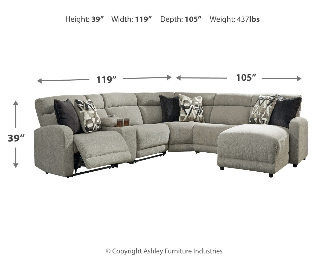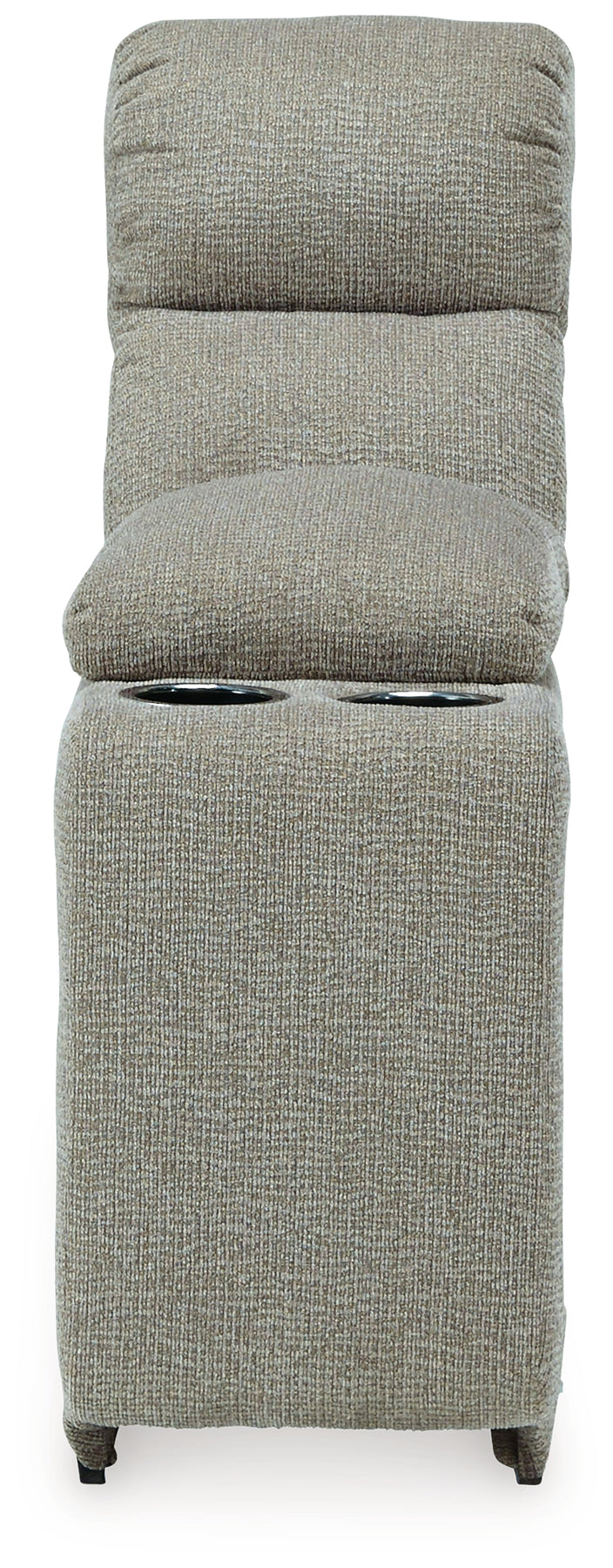 Includes 7 pieces: left-arm facing power recliner, armless power recliner, console with storage, wedge, right-arm facing power reclining back chaise and 2 armless chairs