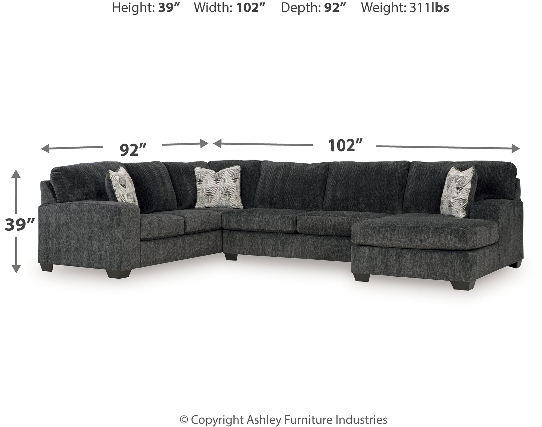 LAF 3-Piece Sectional with Chaise 102" 92" 39"