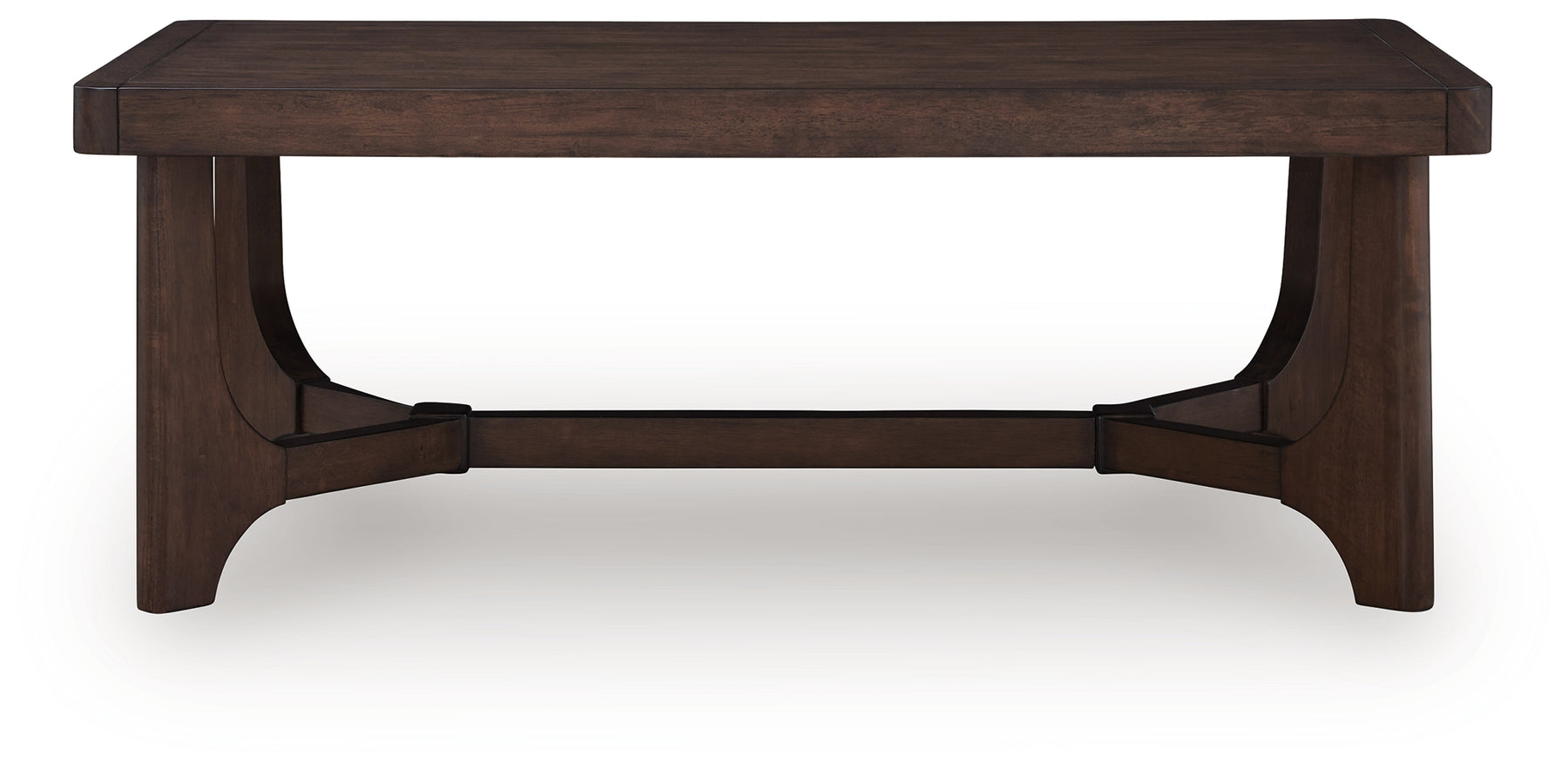 Master the art of casual contemporary design with this coffee table. Its softly rounded wood frame top pairs perfectly with an eye-catching double wishbone base and a rich brown finish for a decidedly here and now vibe. Talk about the ideal spot for drinks, decor and more.
