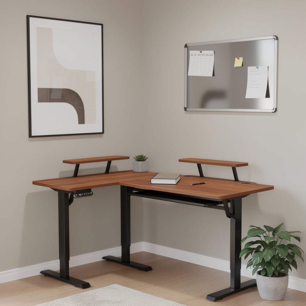Protect your posture and overall wellbeing with this fabulous 45-inch adjustable oak and white standing desk. With a classic shape and style, this well made rectangular desk is a stylish way to keep your office space looking good. Forged with premium craftsmanship and design, this desk is built to last. 63-inch h x 45-inch w x 30-inch d.