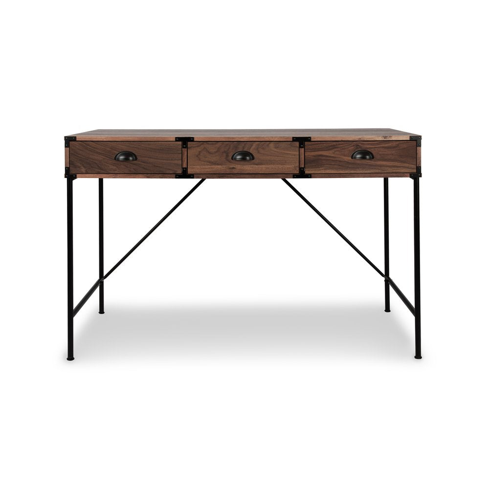 This 47-inch brown wood wall mounted h-shape writing desk with three drawers will bring classic design and styling to your living room, home office or bedroom. With a classic shape and style, this well made rectangular desk is a stylish way to keep your office space looking good. Multiple drawers give this desk plenty of hidden storage for your office essentials. Forged with premium craftsmanship and design, this desk is built to last. 29.50-inch h x 47.00-inch w x 23.00-inch d.