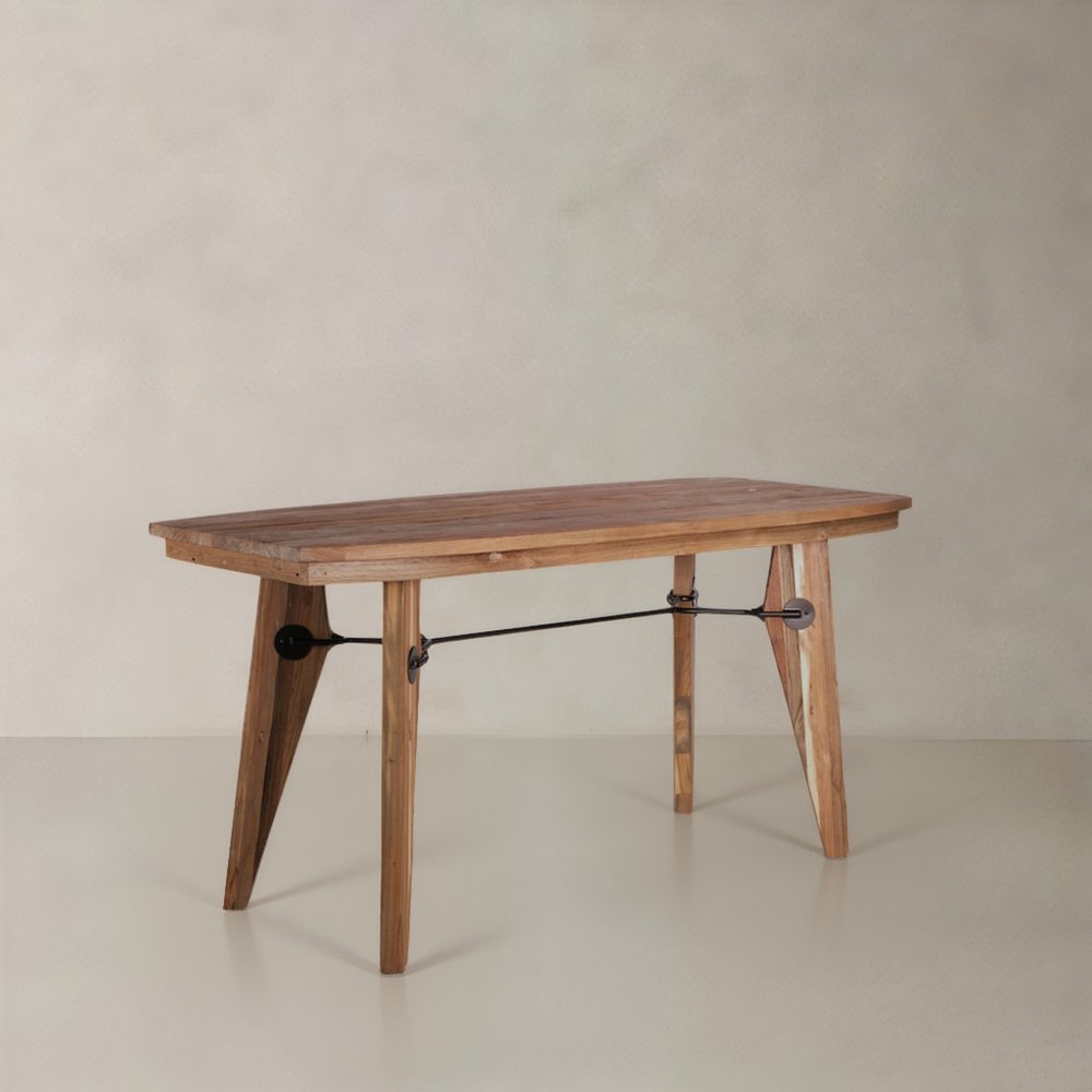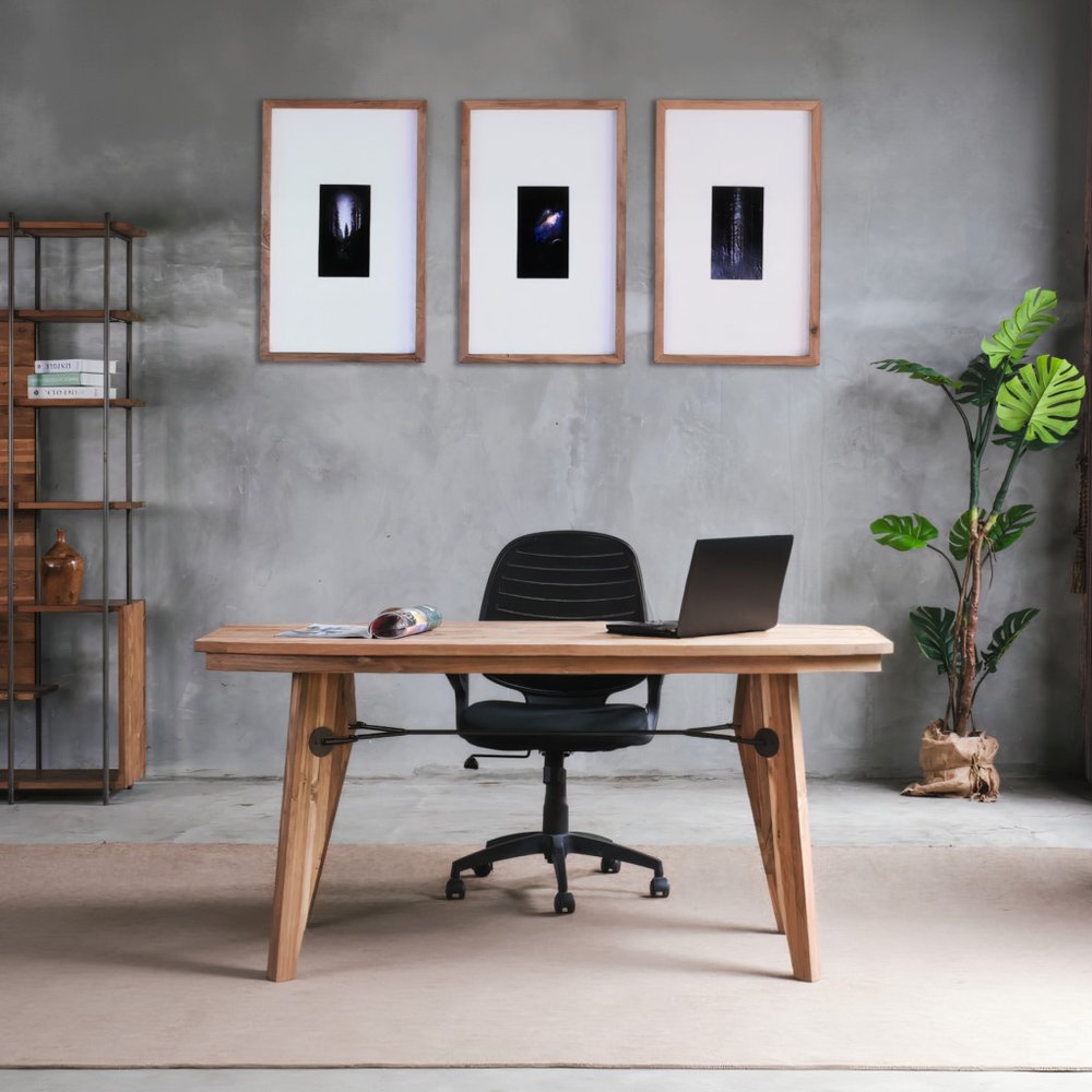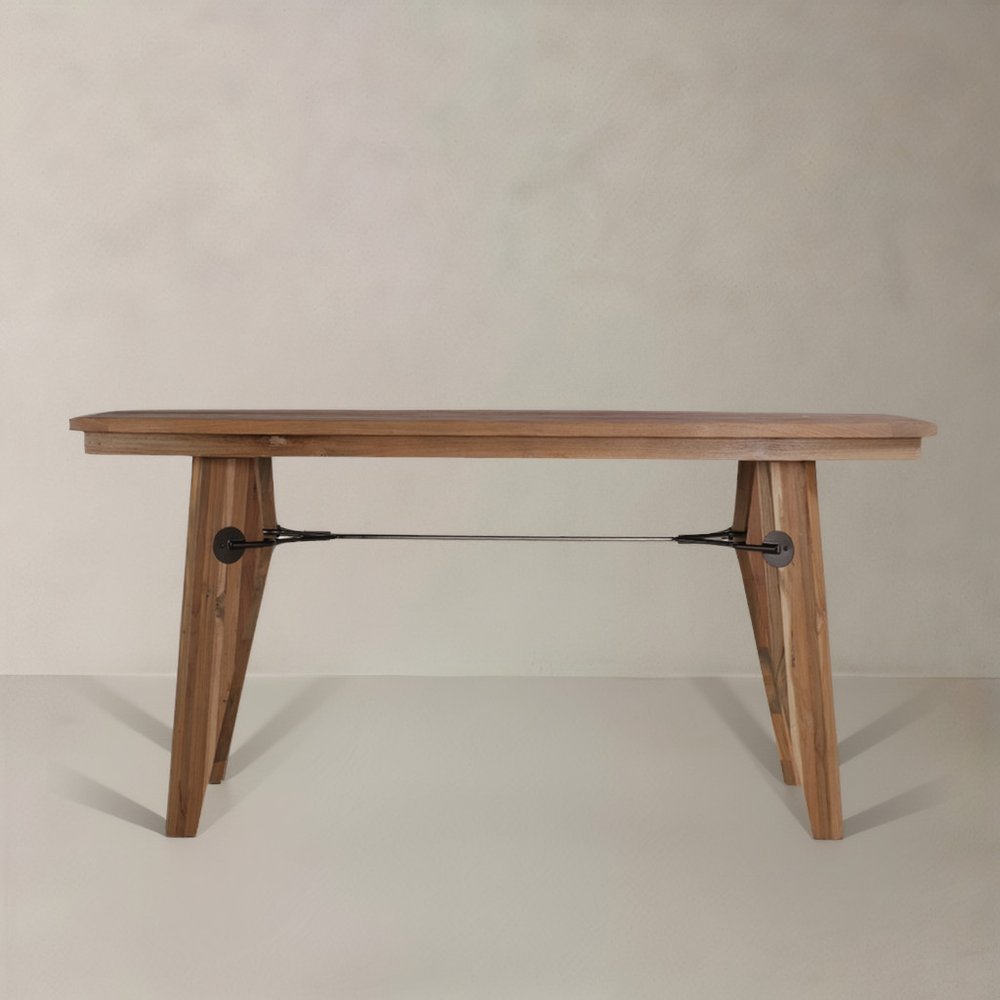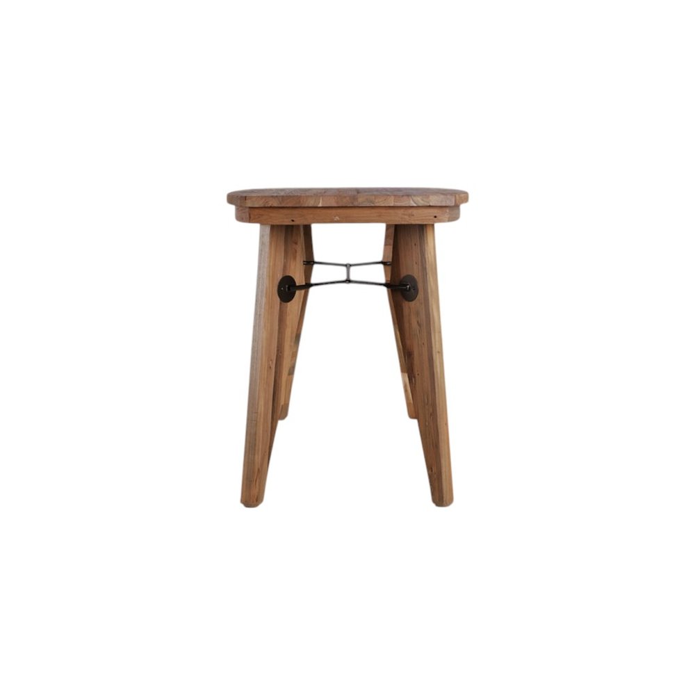 This 63-inch natural reclaimed wood writing desk will bring some unique, modern industrial design and styling to your living room, home office or bedroom. Handcrafted from reclaimed teak wood, the artisanal design features a curved edge oval top surface that resembles a surfboard shape, giving this piece a modern chic aesthetic that will breath a breath of fresh air into your space. Built to last, this sturdy desk is designed for comfort and efficiency for years to come. 30.70-inch h x 63.00-inch w x 25.60-inch d.