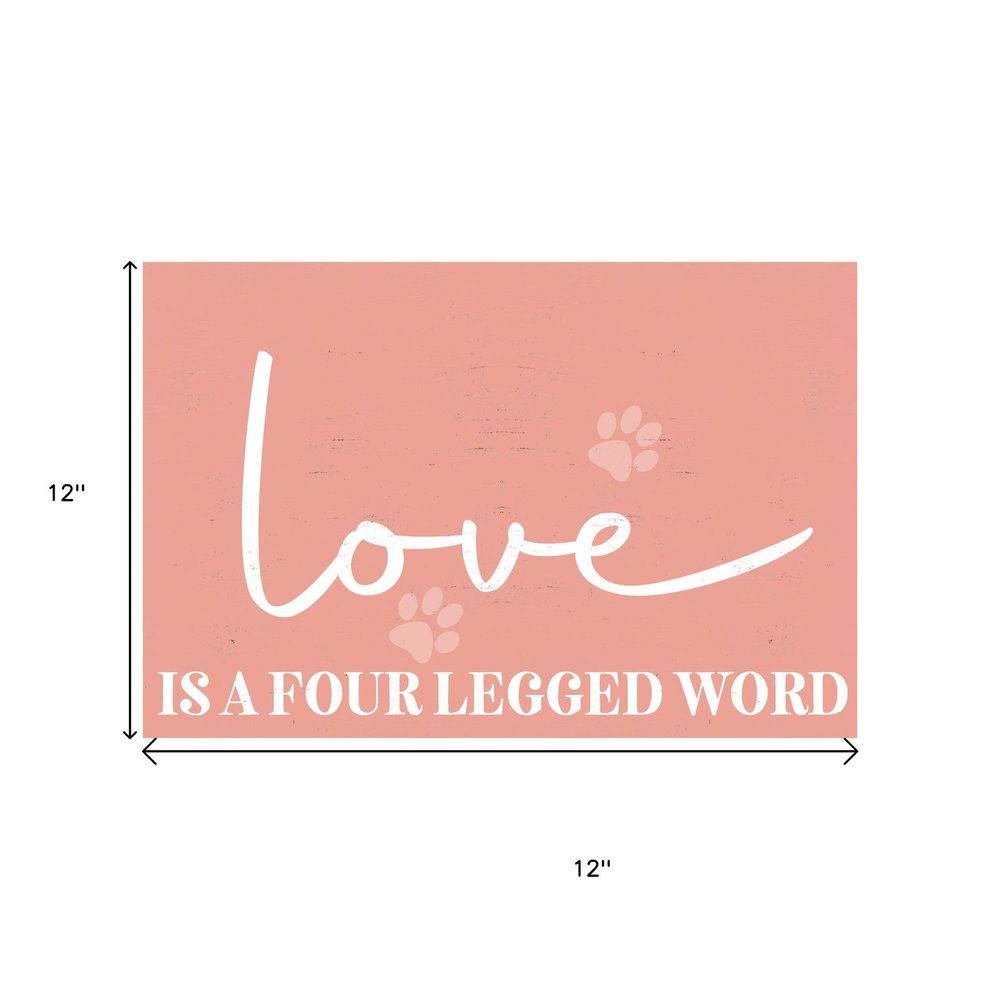 12" X 12" Pink And White Love Is A Four Legged Word Canvas Wall Decor