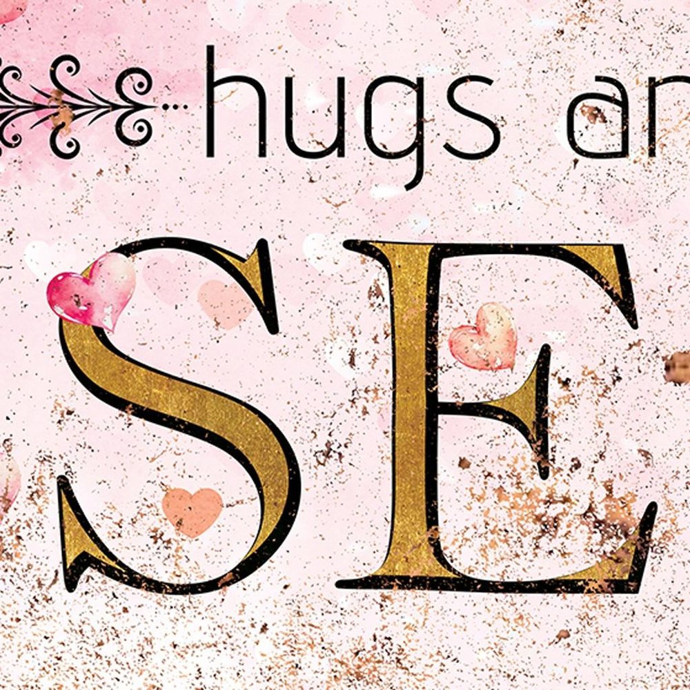 12" X 12" Pink Red And Gold Valentine's Day Hugs and Kisses Canvas Square Wall Decor