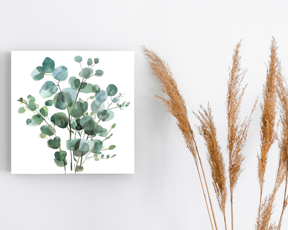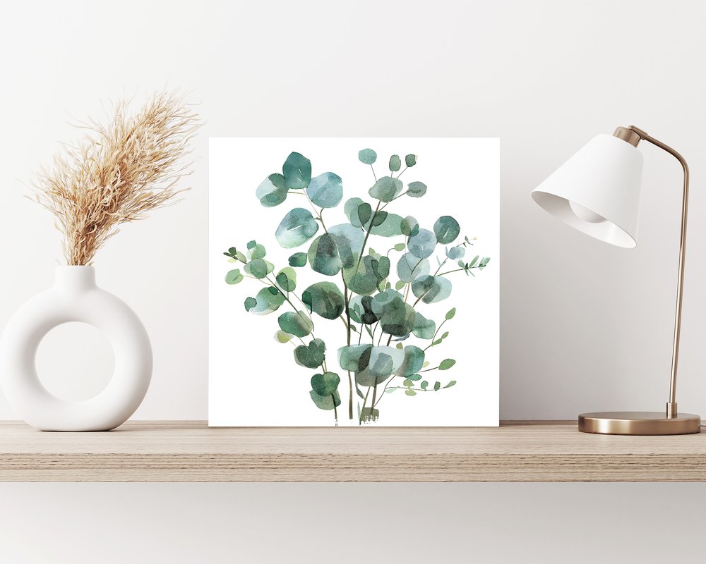 12" X 12" White And Green Floral Canvas Square Hanging Wall Decor