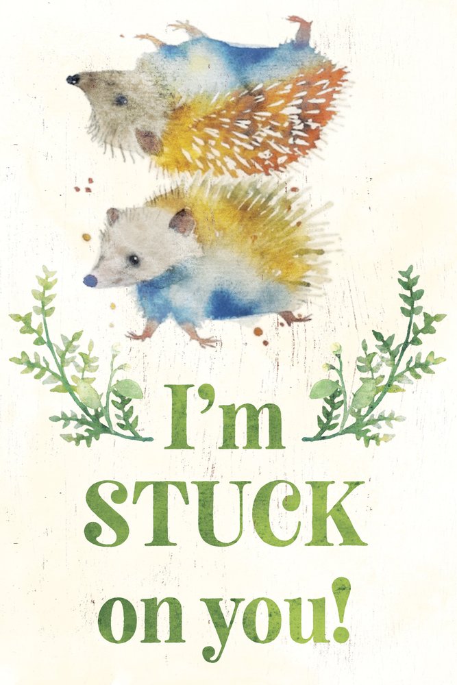 12" X 12" White And Green I'm Stuck On You with Hedgehogs Canvas Wall Decor