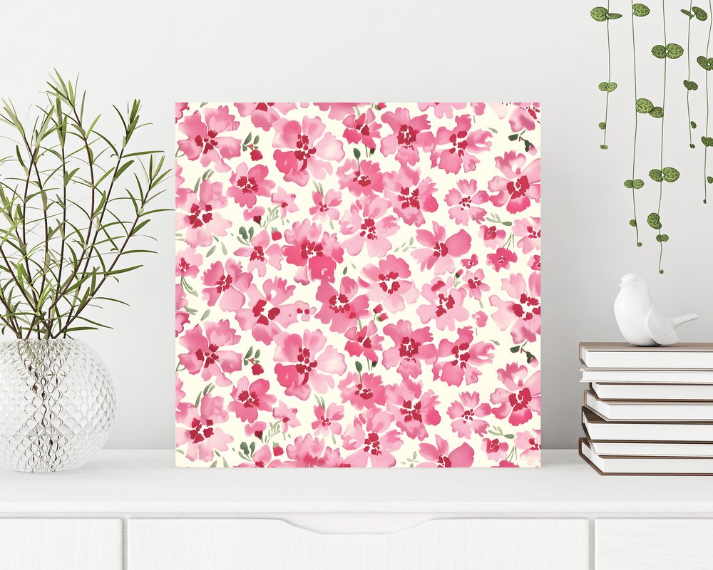 12" X 12" White And Pink Flower Floral Canvas Square Hanging Wall Decor