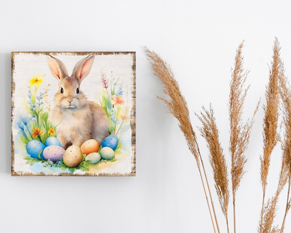 12" X 12" White Yellow And Pink Rabbit Easter Floral Canvas Square Hanging Wall Decor