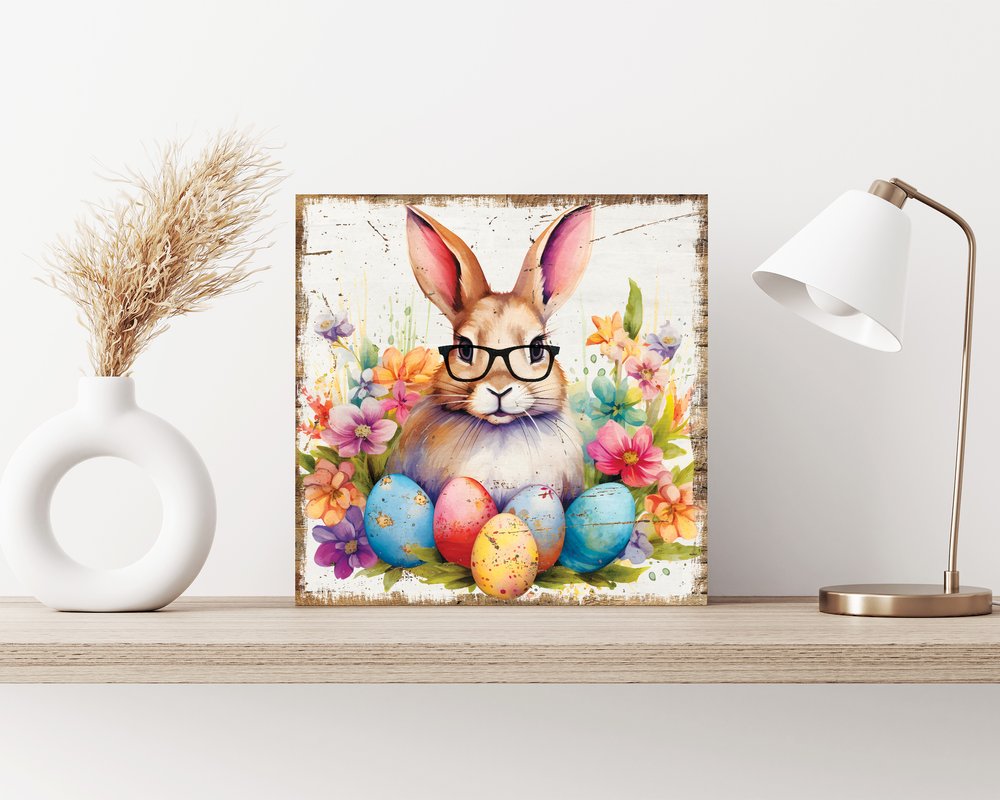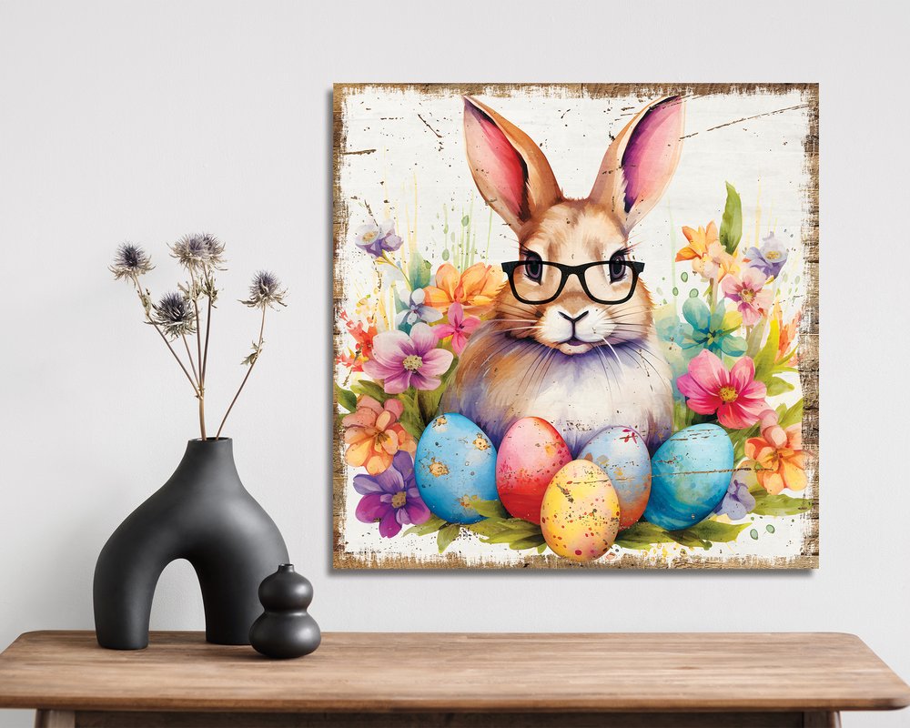 12" X 12" White Yellow And Pink Rabbit Easter Floral Canvas Square Hanging Wall Decor