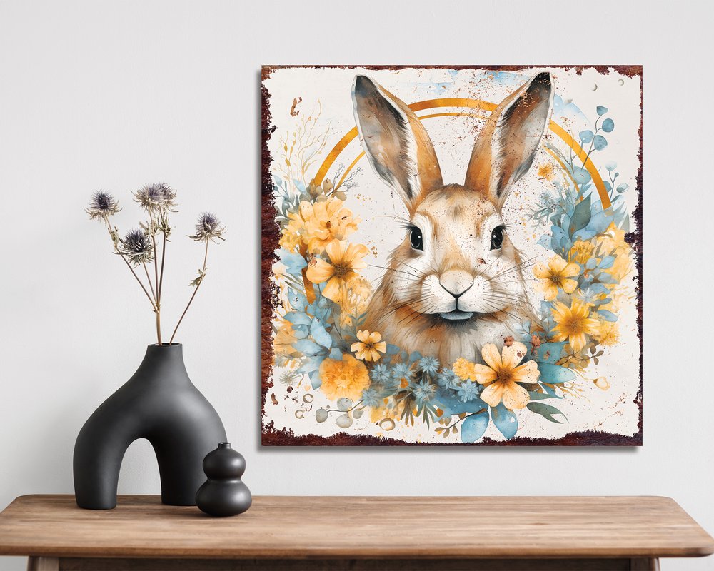 12" X 12" White Yellow And Pink Rabbit Easter Floral Canvas Square Hanging Wall Decor